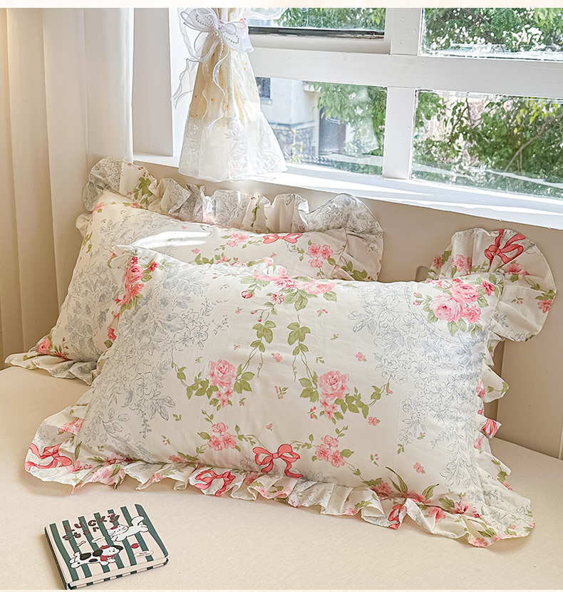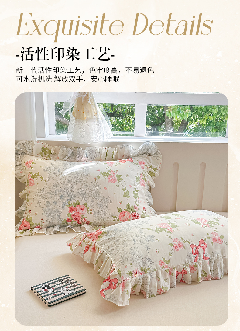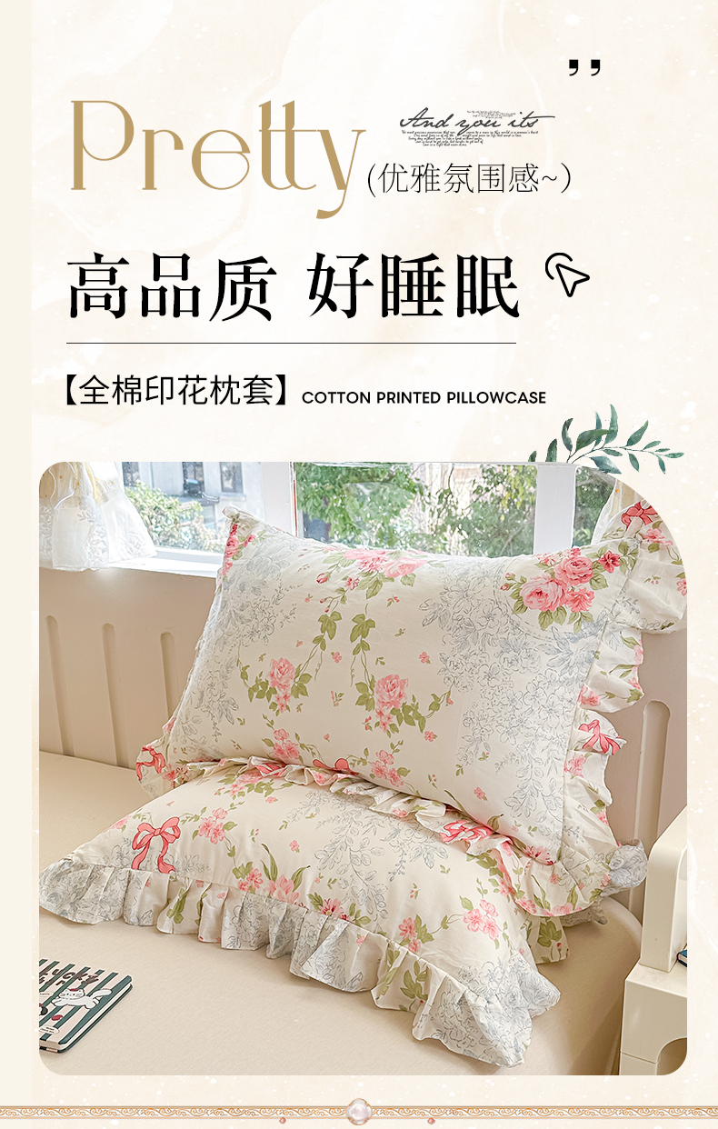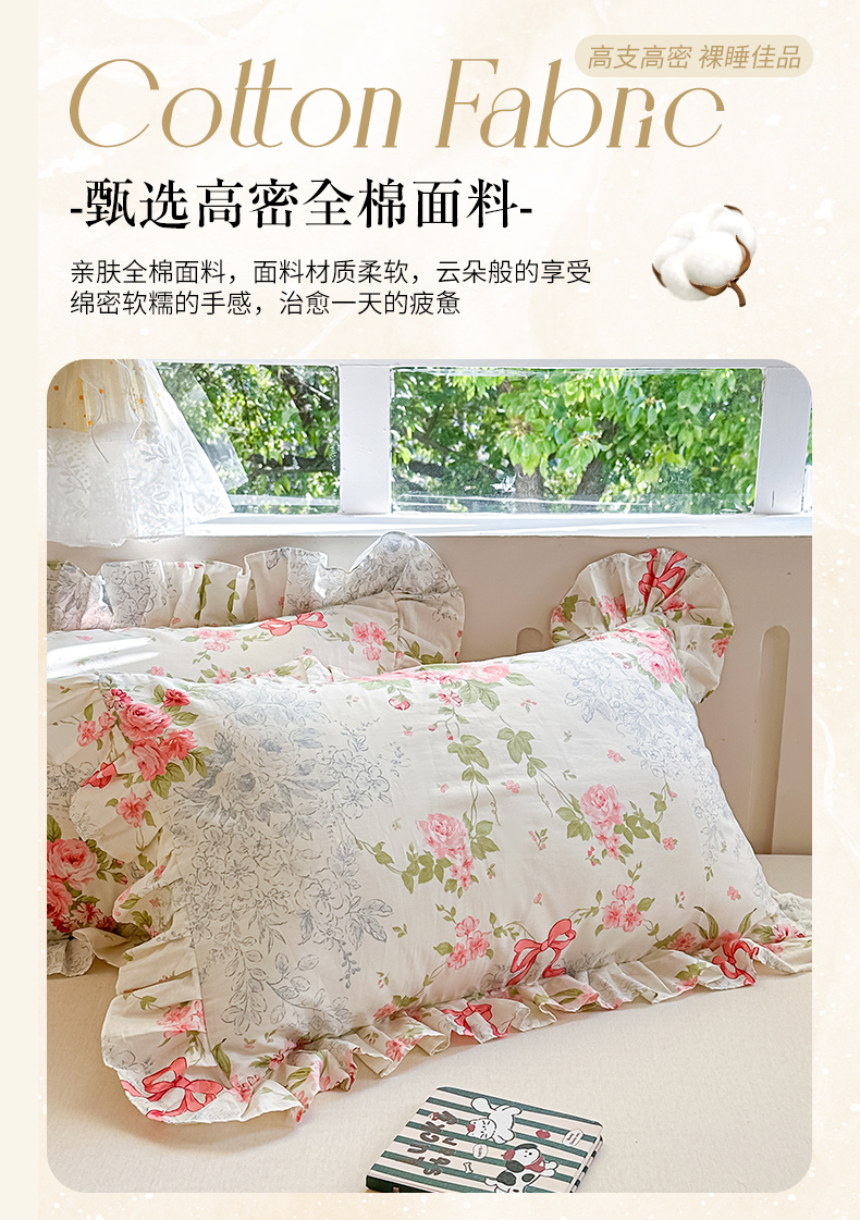 忘忧草 2026新款全棉纯棉印花精致花边枕套单枕套 枕套单件 柏林花涧