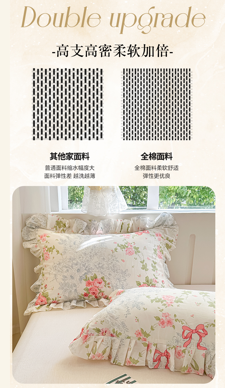 (总)忘忧草 2025新款全棉133*72纯棉小清新床裙花边四件套,妃子笑,花开满满,花里梦,卡芙卡,陌上花颜,倾城繁花 灰,倾城繁花 紫,森物语,屋顶花园,樱桃浪漫,遇见浪漫,云香