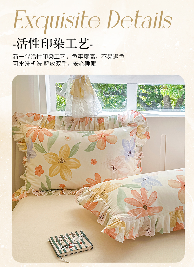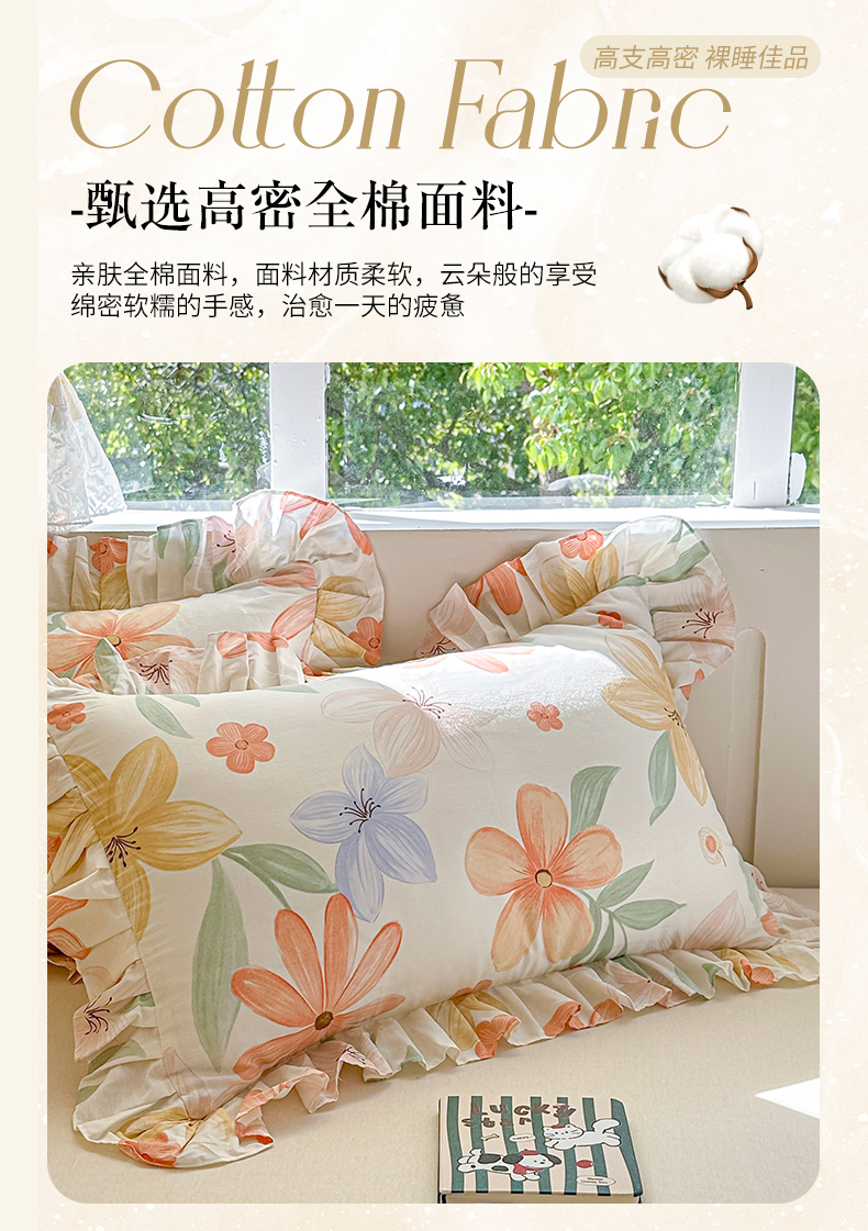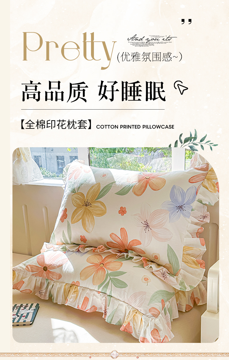 商品名称:忘忧草 2026新款全棉纯棉印花精致花边枕套单枕套 枕套单件 云裳花谷