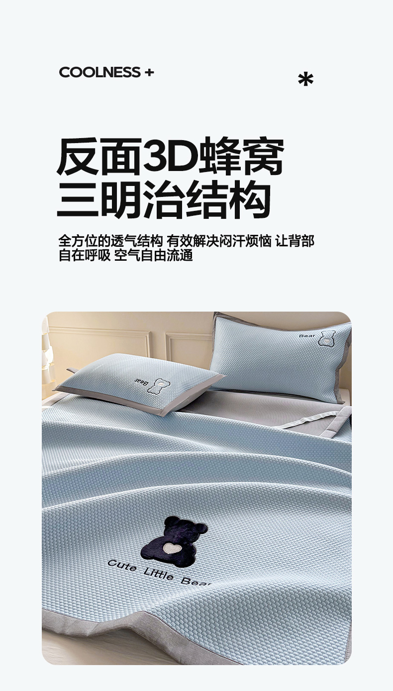 当前位置: 91家纺网 > 商品网购 > 床上用品 > 凉席 > 其他凉席 > 卡初家居(原微来) 2026春夏新款A类乙纶冰豆豆凉感席绣花席凉席席子-炫酷熊系列 炫酷熊-天空蓝