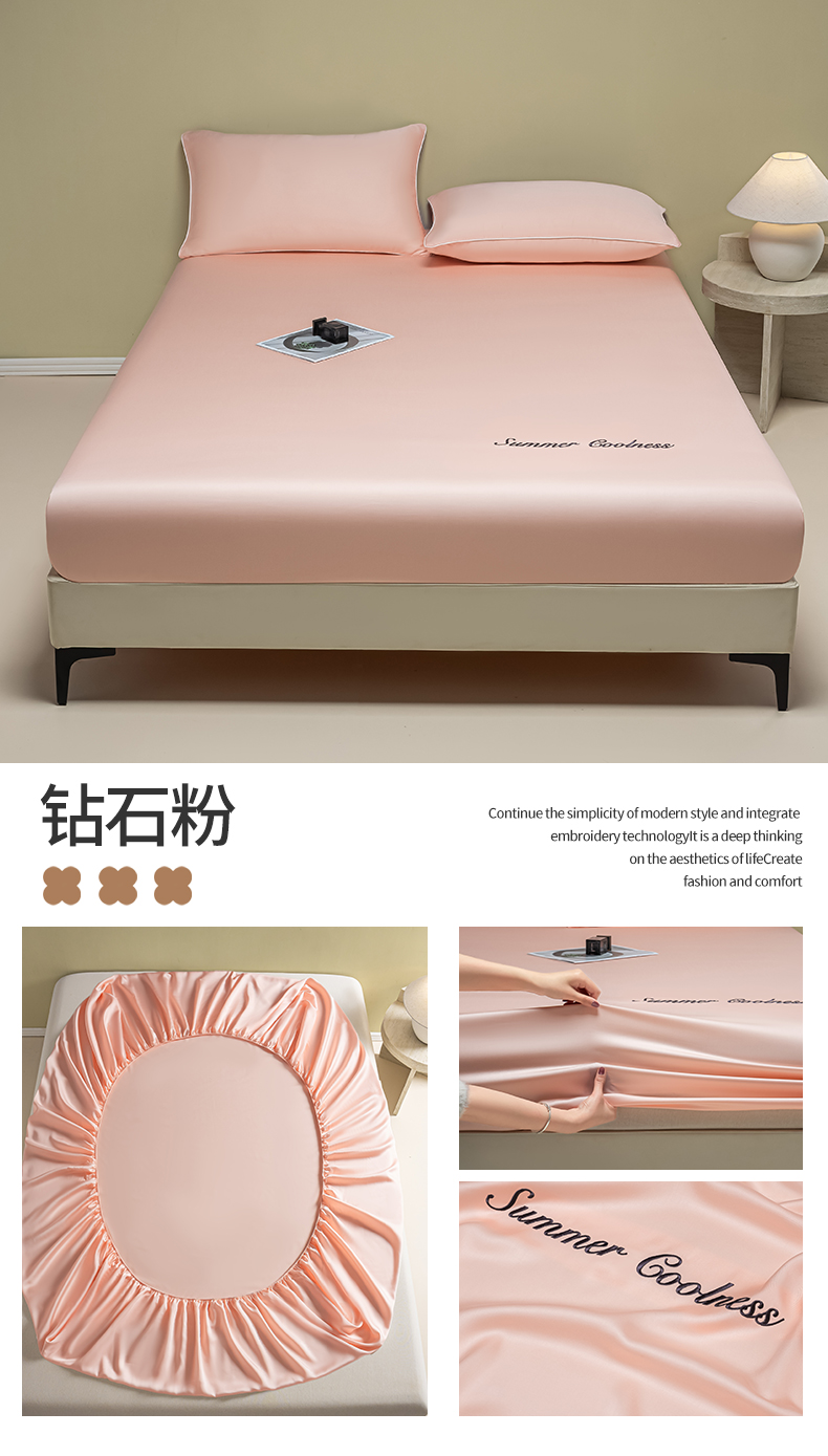 • 91家纺网 家纺一手货源 找家纺 (总)美澳家纺 2026春夏新款纯色刺绣凉感水洗冰丝真丝床笠三件套,宾利兰,冰川蓝,贵族白,奶酪黄,嫩牙绿,绅士灰,香槟黄,曜石黑,钻石粉