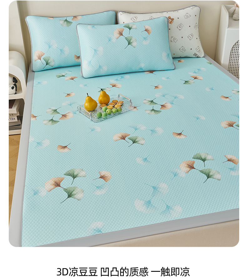 家品罗兰 2026新款夏季A类印花冰豆豆凉席三明治透气网冰丝凉席家用双人冰丝席床单-大床图 叶语