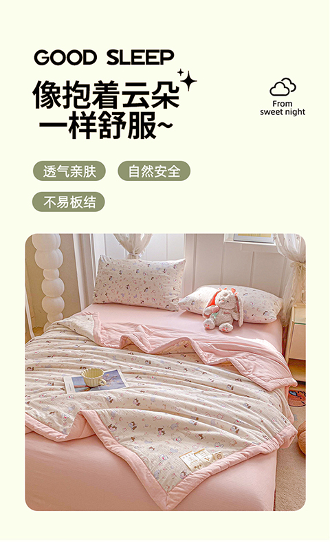 爱屋及屋 2026新款小清新双层纱宽包边棉花被夏凉被空调被夏被 苹果猫