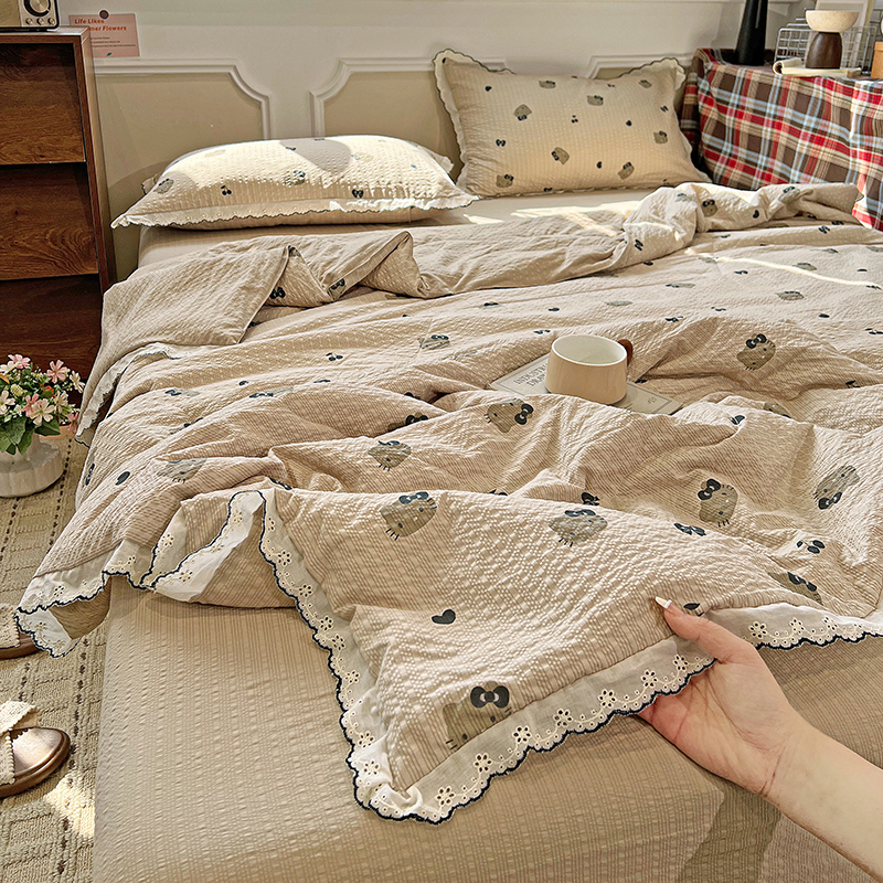 (总)梦莱斯 2026新款夏被四件套,白咖,淡紫,鹅黄,粉色,咖色,青色,天蓝