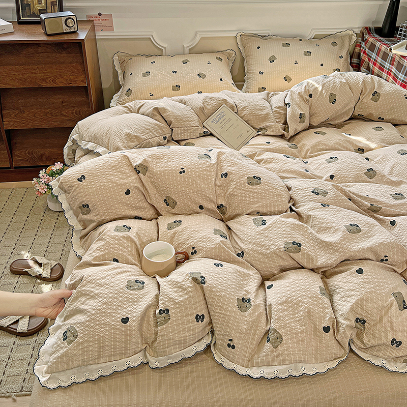 (总)梦莱斯 2026新款A类古法水洗仿棉云感纱四件套,豹纹咖,彩色波点,格子熊,狗狗家族,禾莳,花梦蔓,花影,花枝棠,灰格心,简韵,凯蒂猫,漫花蝶舞,漫野,莓果,暖兔,七分甜,狮茶春日序,甜心狗,甜心人,兔耳朵,许个鱼愿,小波点,温暖熊,午后时光,小玫瑰,知秋,惜花米黄,小象,小白马,微笑,枝花间,叶初开,樱之桃桃,兔小姐,兔兔格,屿花,愿落星河