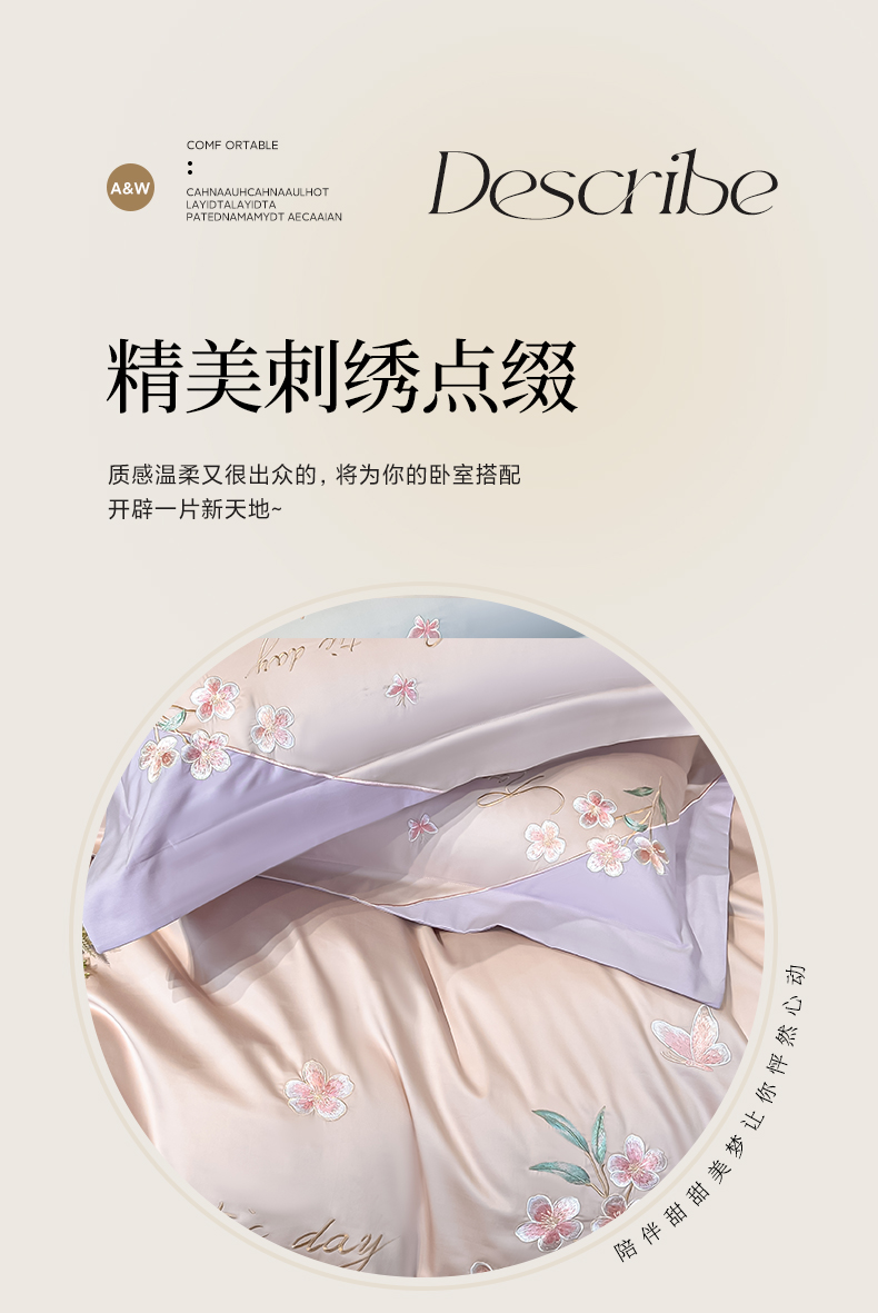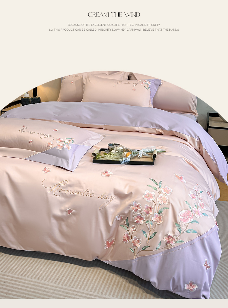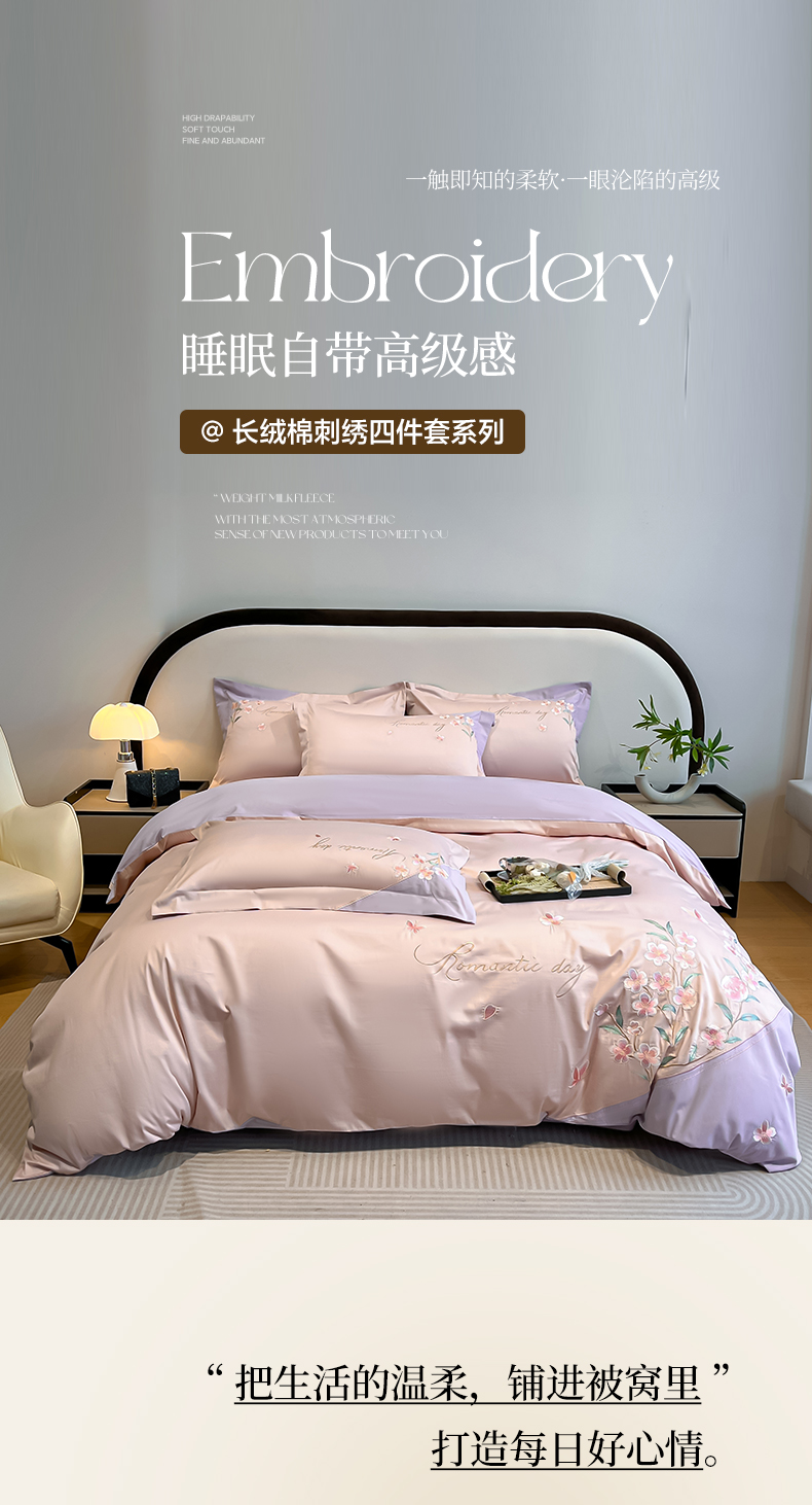 当前位置: 91家纺网 > 商品网购 > 床品套件 > 四件套 > 全棉普通四件套 > 欣宜家纺 2026年新款纯棉全棉长绒棉刺绣绣花四件套 花语-轻奢粉