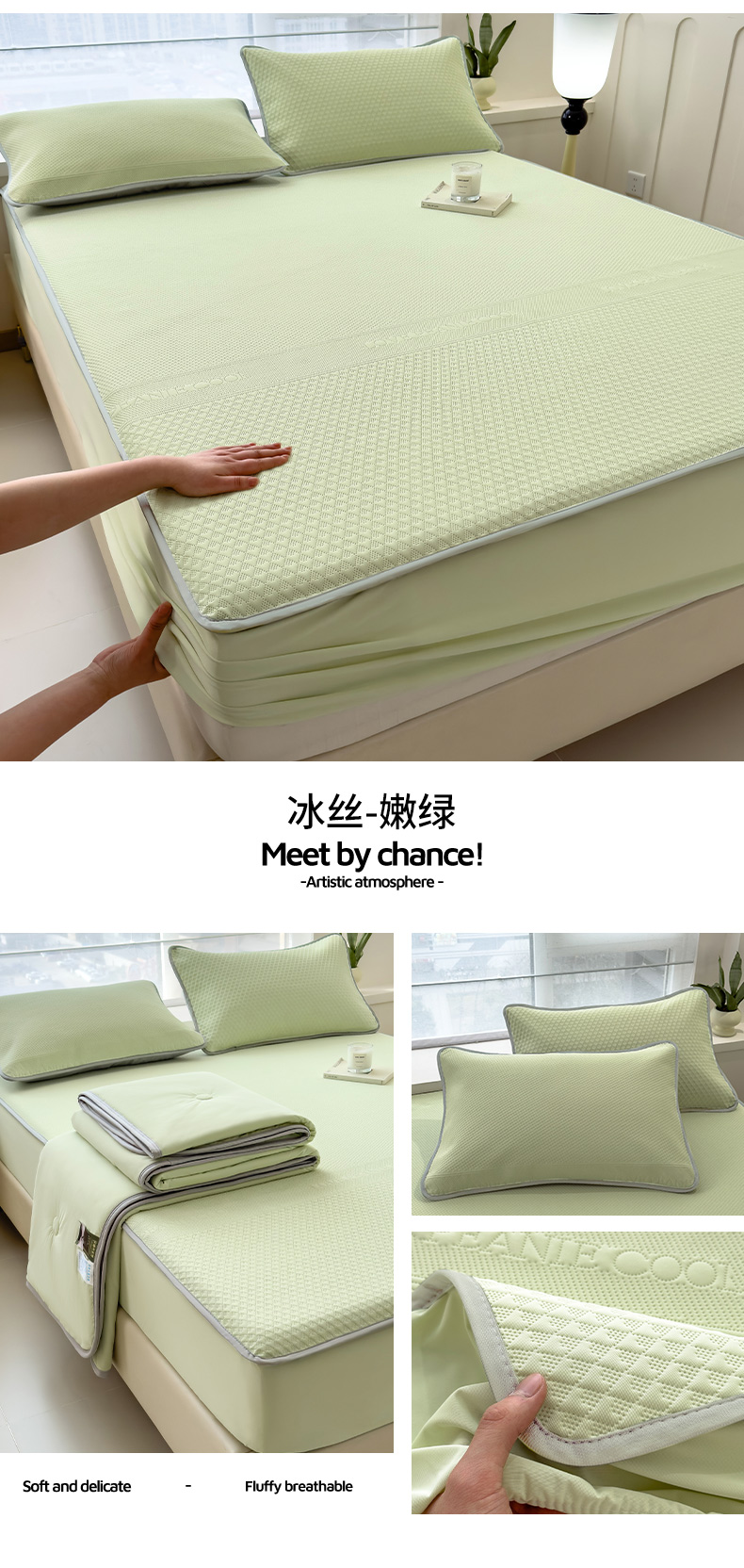 当前位置: 91家纺网 > 商品网购 > 床上用品 > 凉席 > 其他凉席 > 乐家欣 2026新款凉感冰丝床席床笠四件套 冰丝床笠款-嫩绿