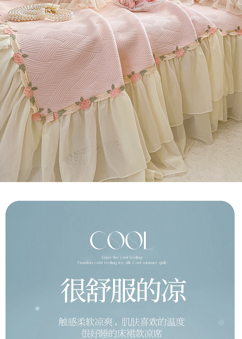 (总)瑞宝2025新款PE凉感花边床裙款凉席夏被四件套-夏日玫瑰,夏日玫瑰-抹茶绿,夏日玫瑰-奶油白,夏日玫瑰-少女粉
