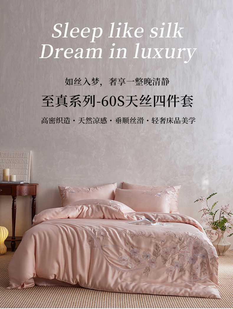 当前位置: 91家纺网 > 商品网购 > 床品套件 > 四件套 > 莱赛尔四件套 > 爱缦 2026新款60支兰精天丝四件套--至真系列 玉粉