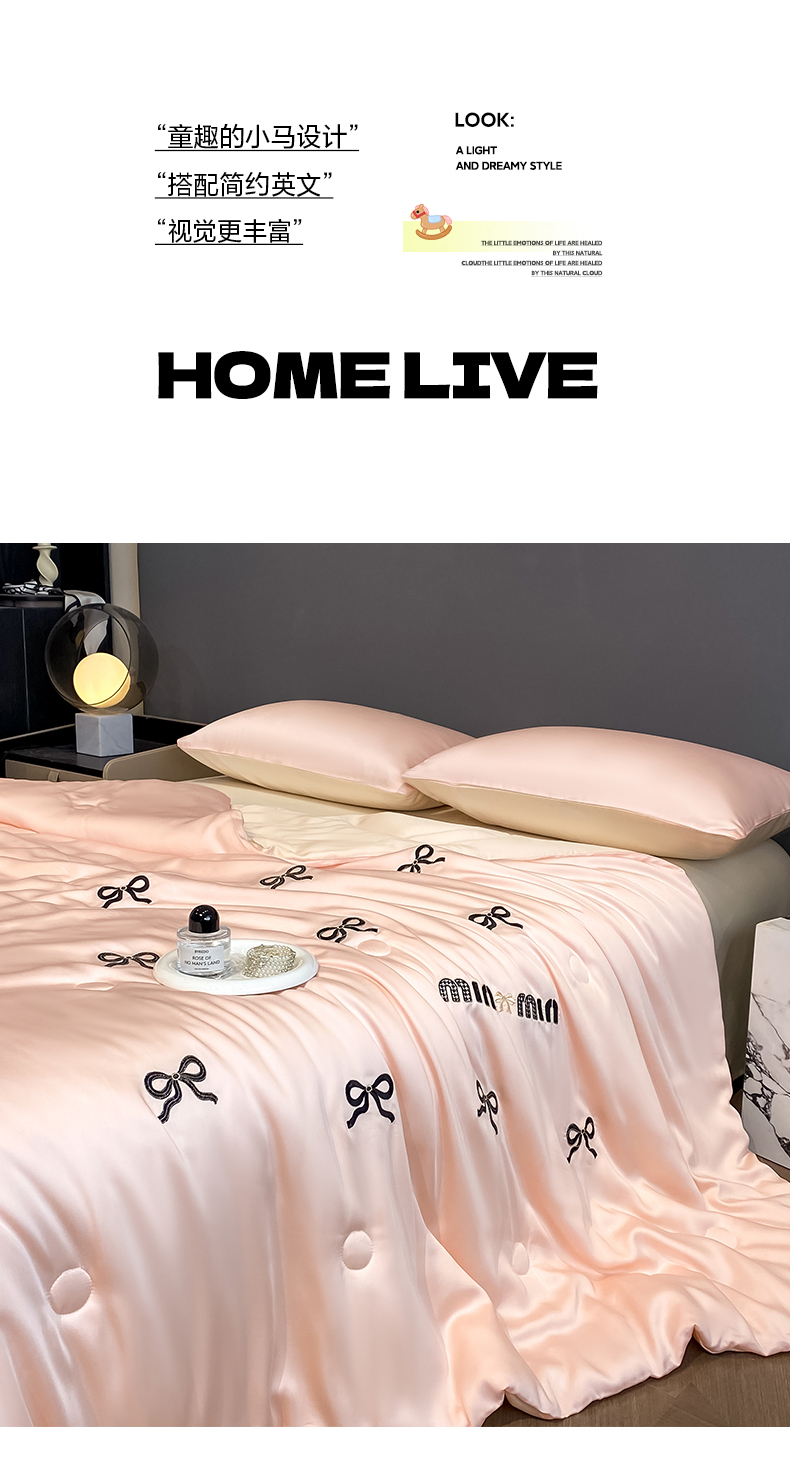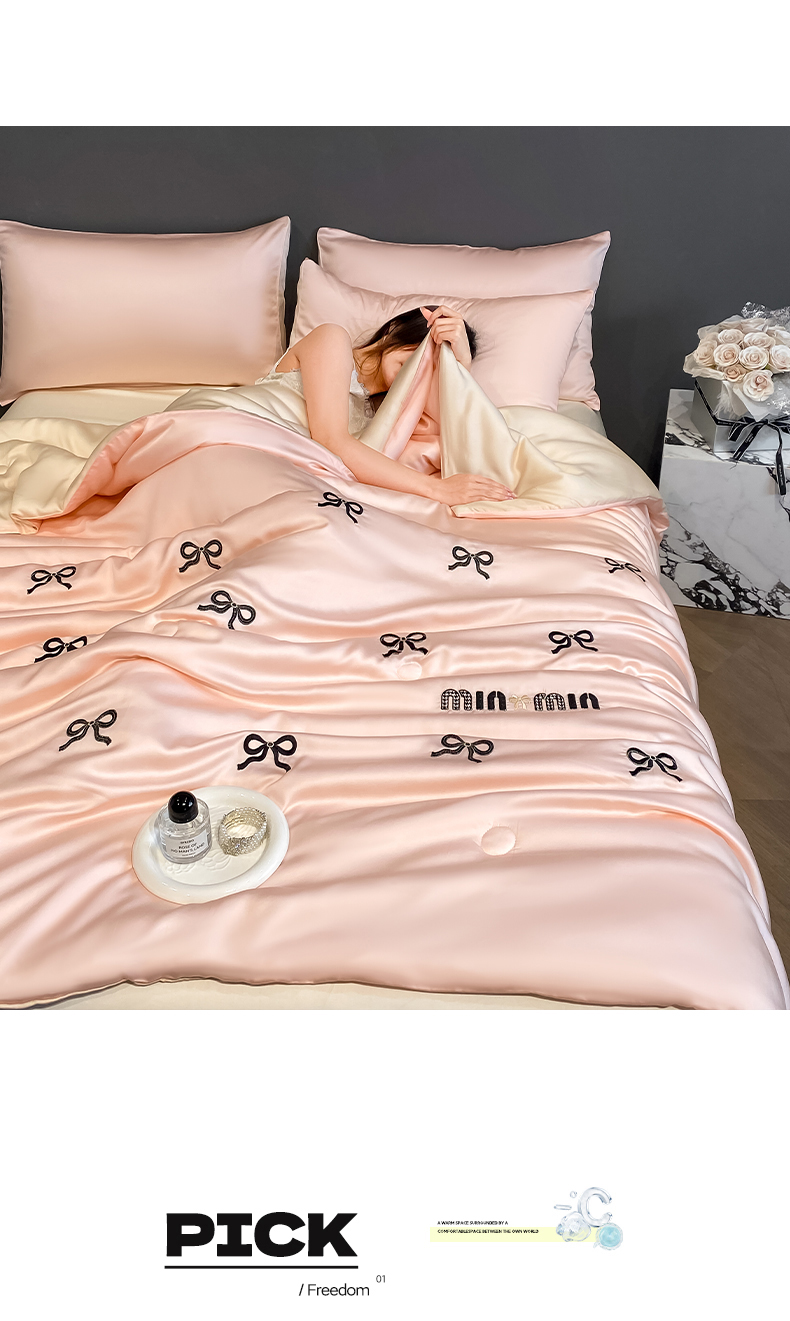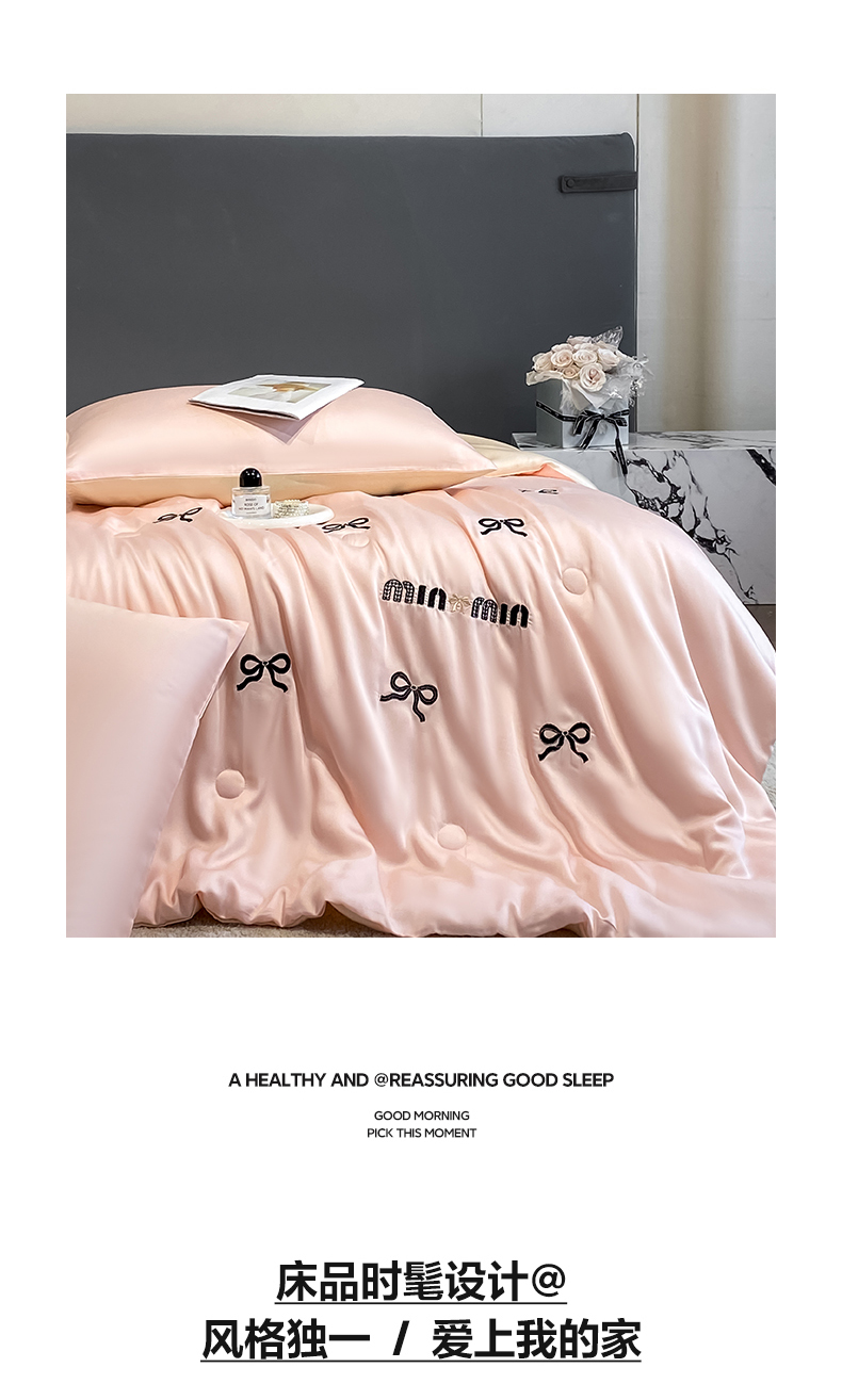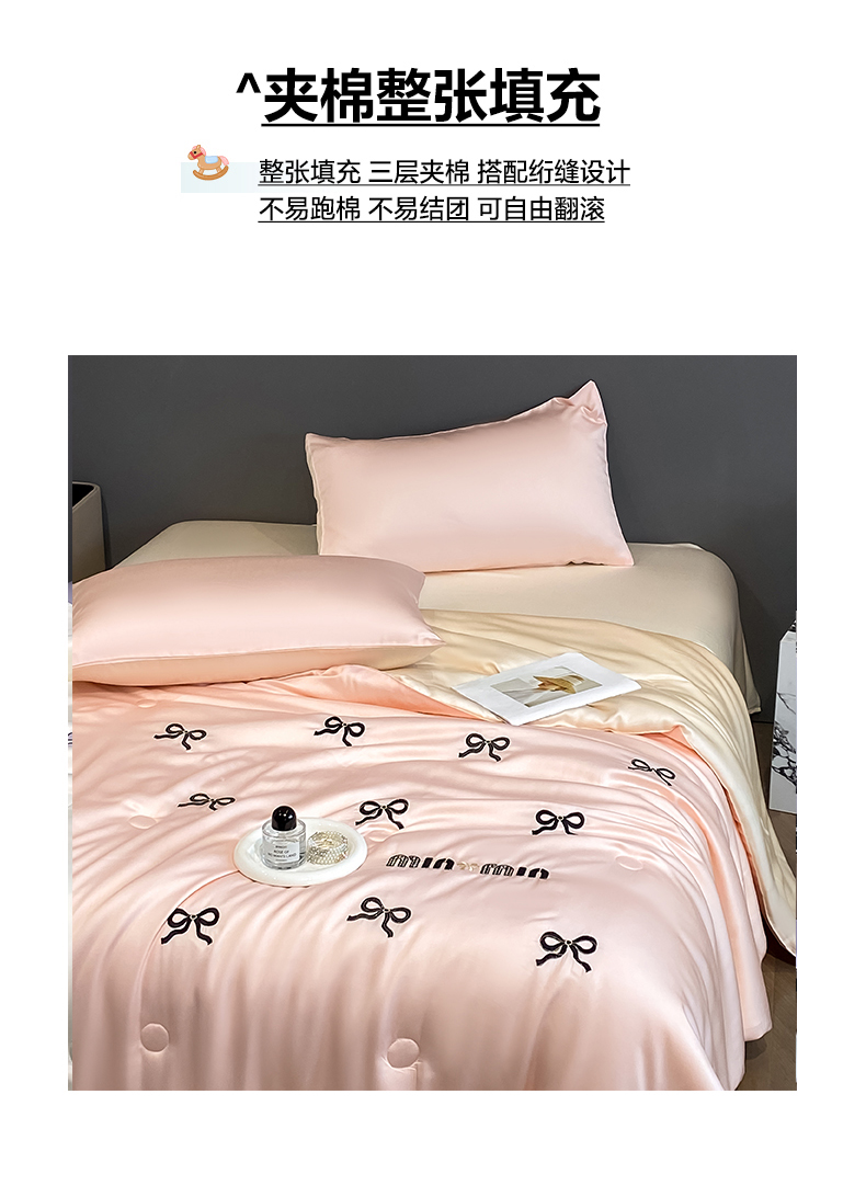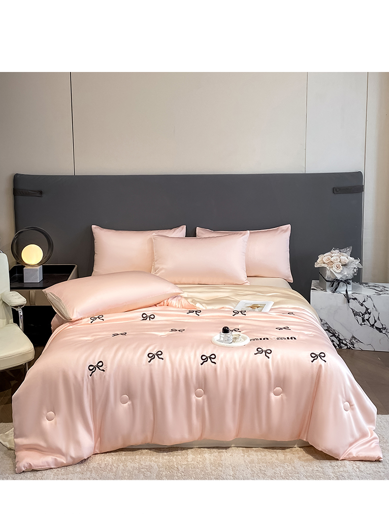 • 91家纺网 家纺一手货源 找家纺 云棉坊 2026新款水洗冰丝夏被-满绣系列 蝴蝶结-粉香槟
