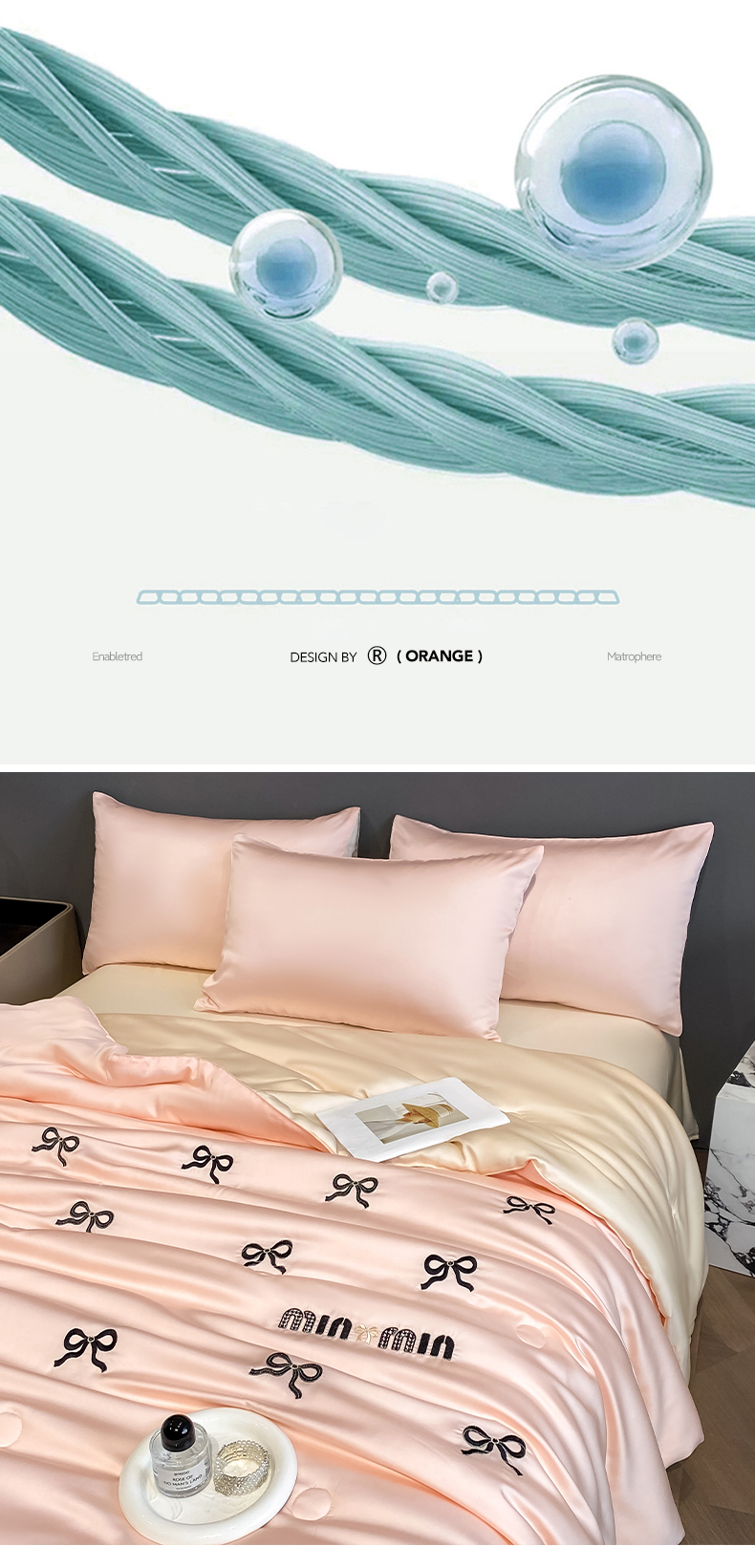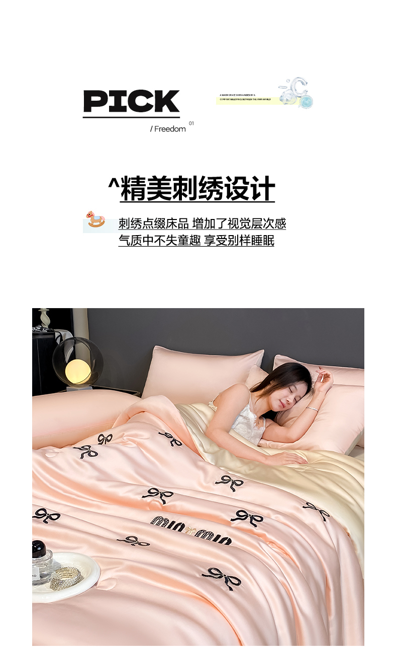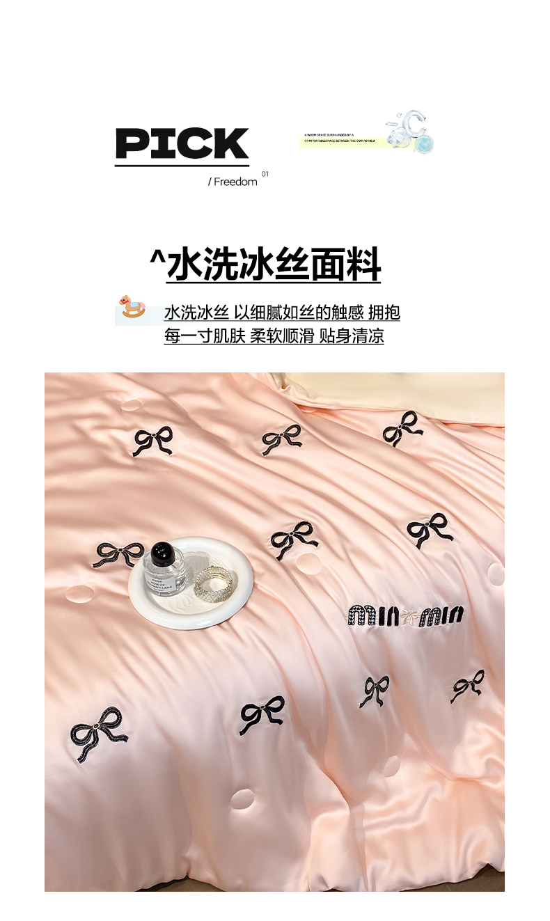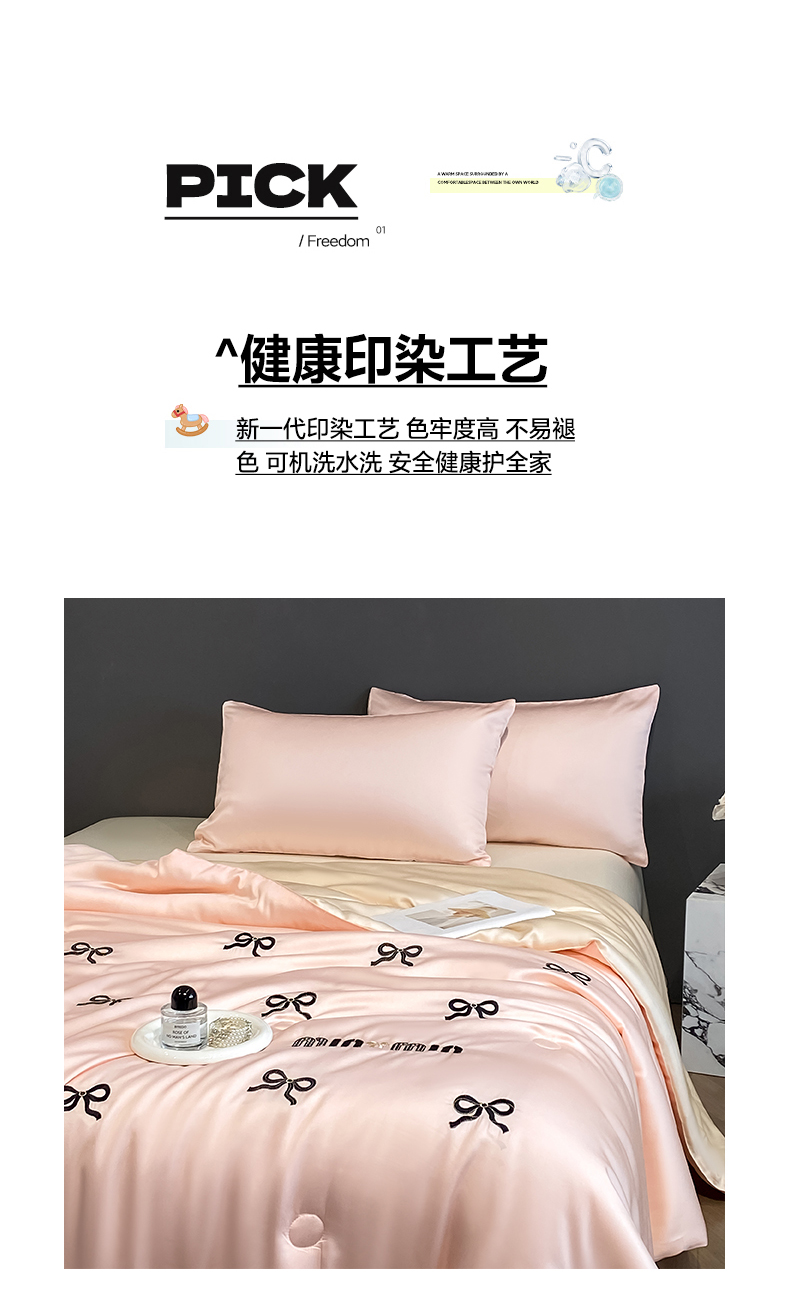 • 91家纺网 家纺一手货源 找家纺 云棉坊 2026新款水洗冰丝夏被-满绣系列 蝴蝶结-粉香槟