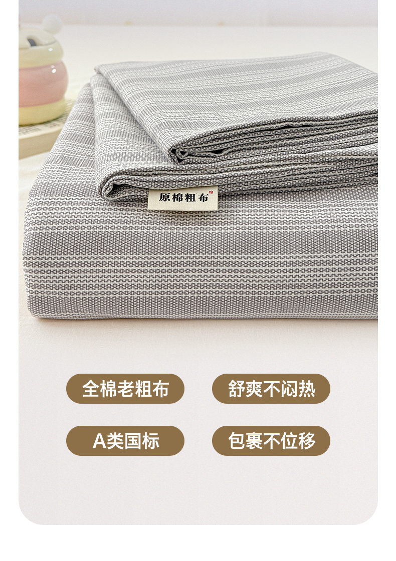 当前位置: 91家纺网 > 商品网购 > 床上用品 > 床笠 > 名兮家居 2026春夏新款A类全棉纯棉老粗布床笠 床笠单件 条纹灰