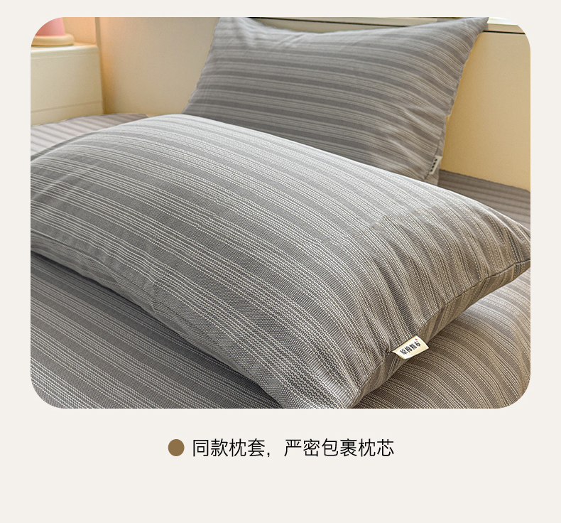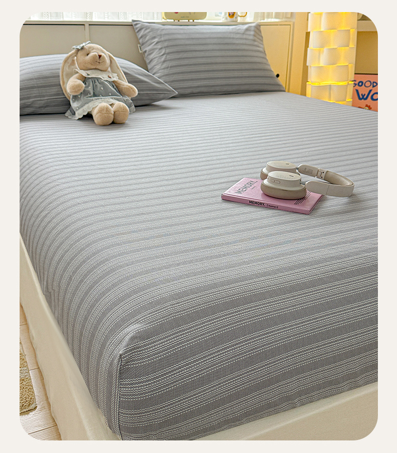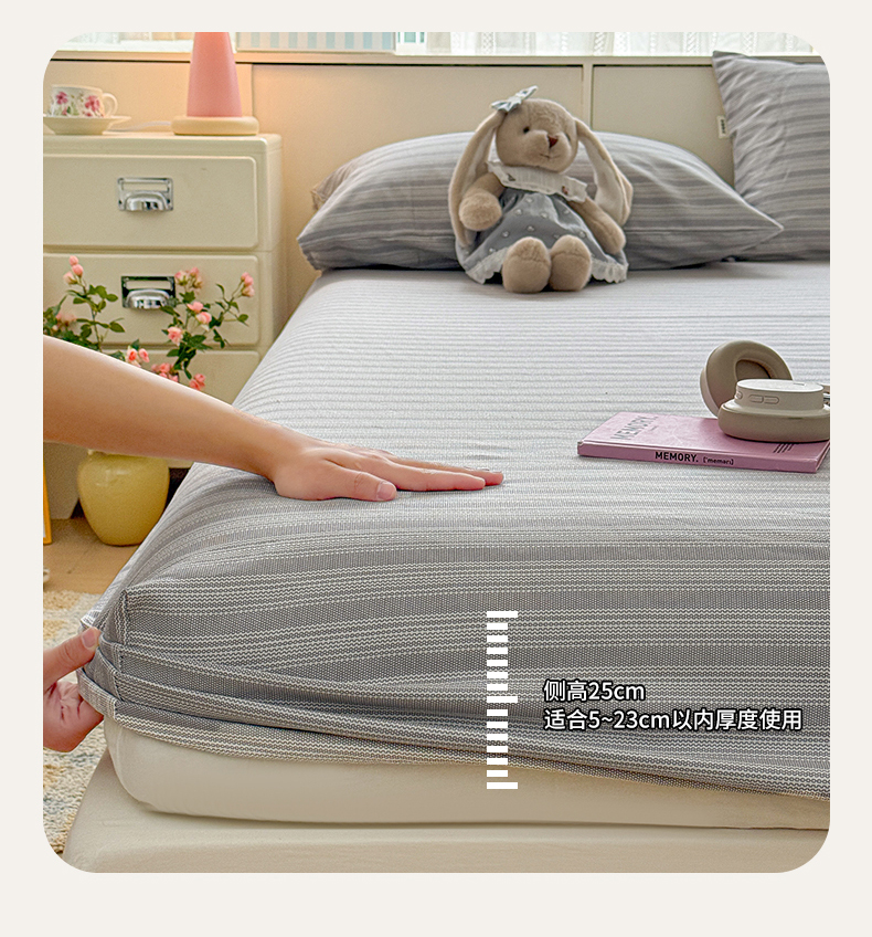 • 91家纺网 家纺一手货源 找家纺 名兮家居 2026春夏新款A类全棉纯棉老粗布床笠 床笠单件 条纹灰