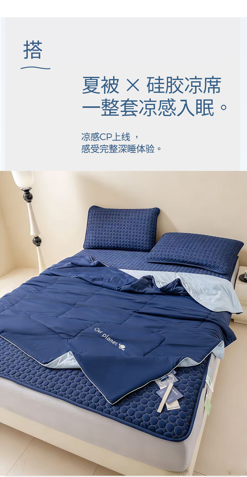(总)深睡眠凉感被 针织棉夏被 凉感科技 空调被 夏凉被 纯色凉感丝 大气 简约 高级感 硅胶凉席 纯色双拼 拼色