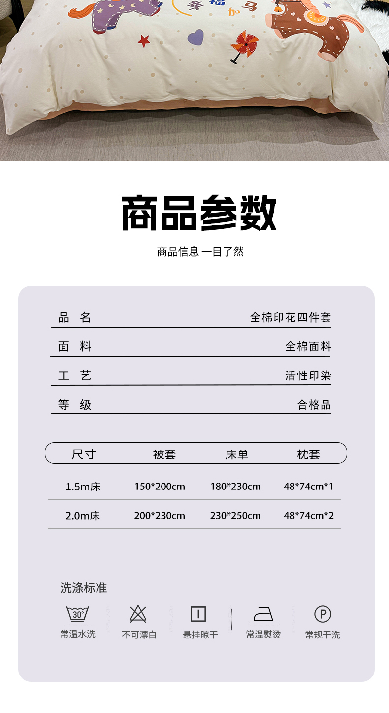 商品名称:红日子纺织品 2026新款13070全棉纯棉数码印花大版印花四件套 幸福加马-卡