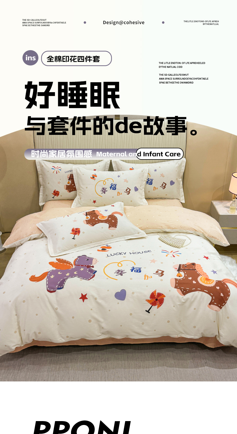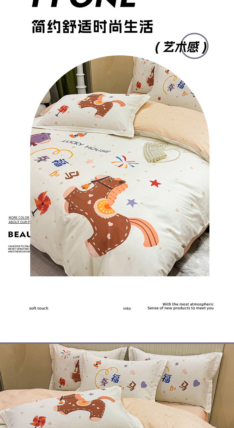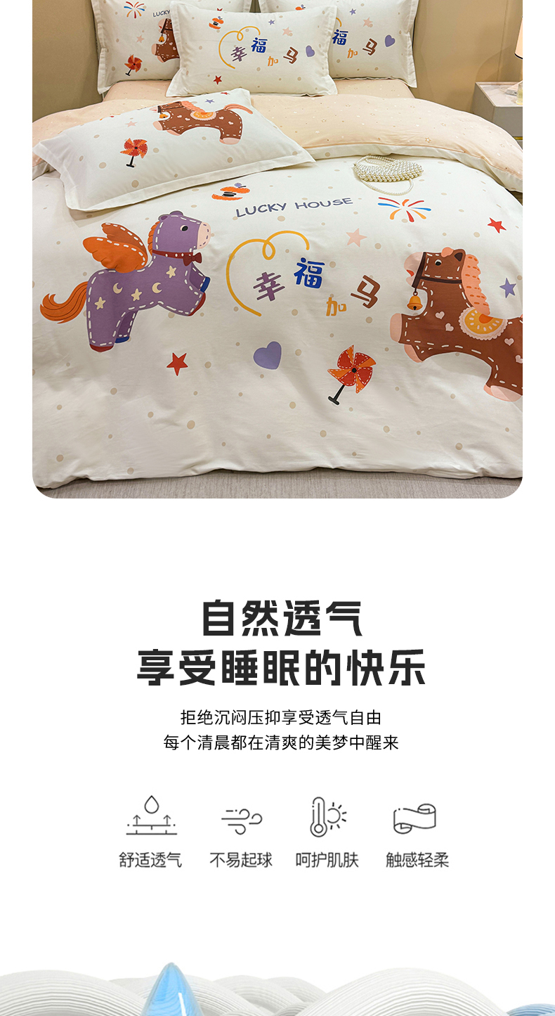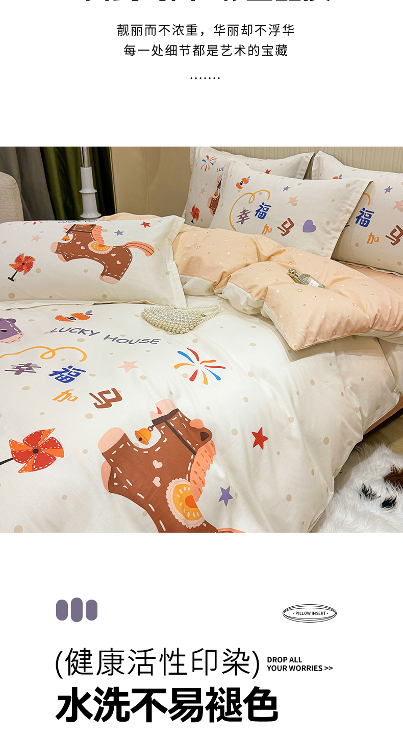 红日子纺织品 2026新款13070全棉纯棉数码印花大版印花四件套 幸福加马-卡