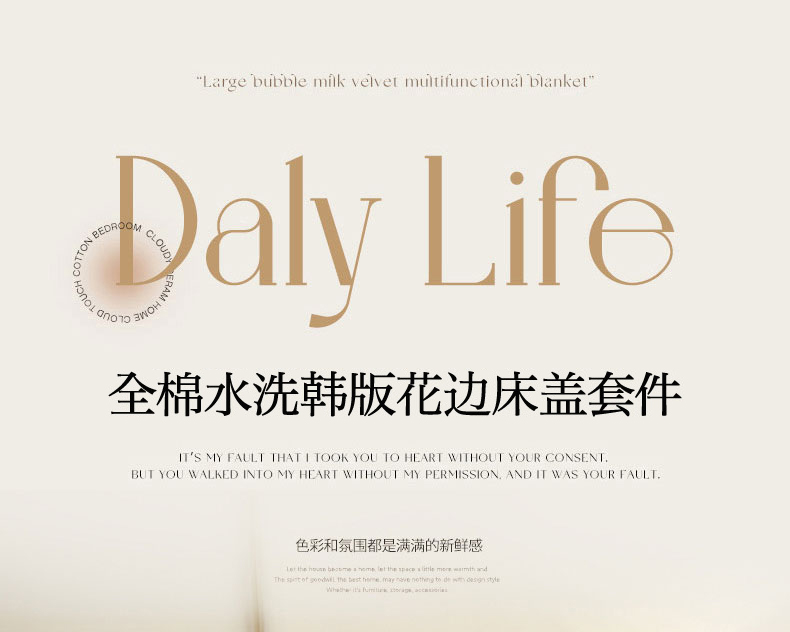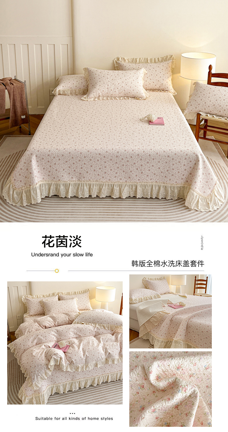 当前位置: 91家纺网 > 商品网购 > 床品套件 > 四件套 > 全棉普通四件套 > 羽爱家纺 2026新款全棉水洗韩版花边床盖四件套 步步生莲
