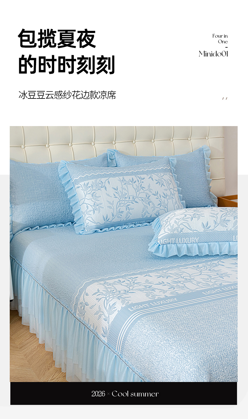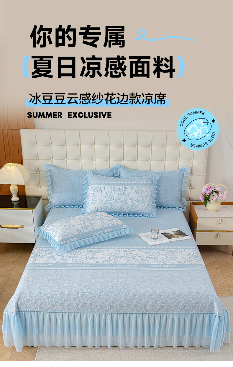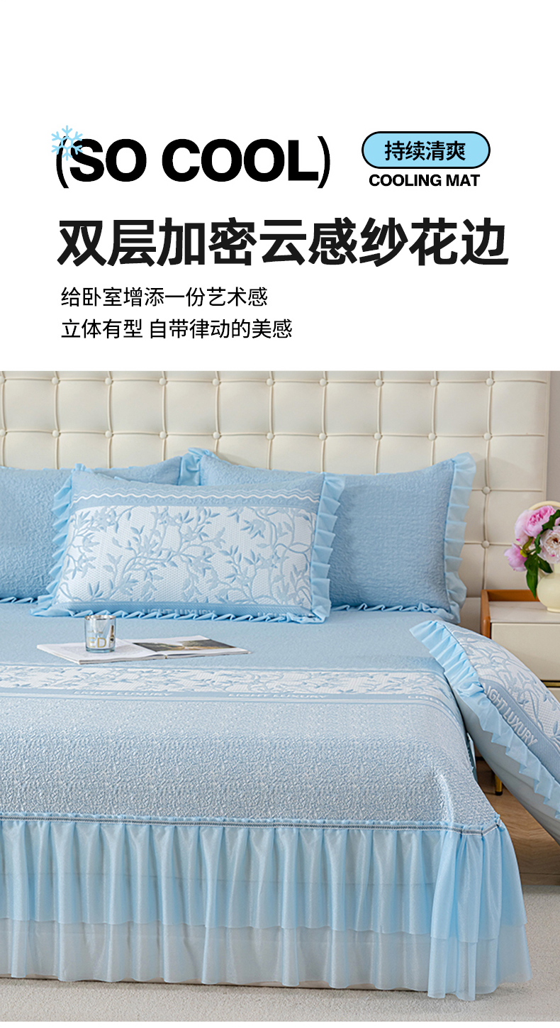 当前位置: 91家纺网 > 商品网购 > 床上用品 > 凉席 > 其他凉席 > 冬然家纺 2026新款【清凉一夏系列】冰豆豆凉席床裙款 清凉一夏-蓝
