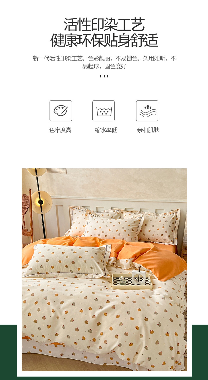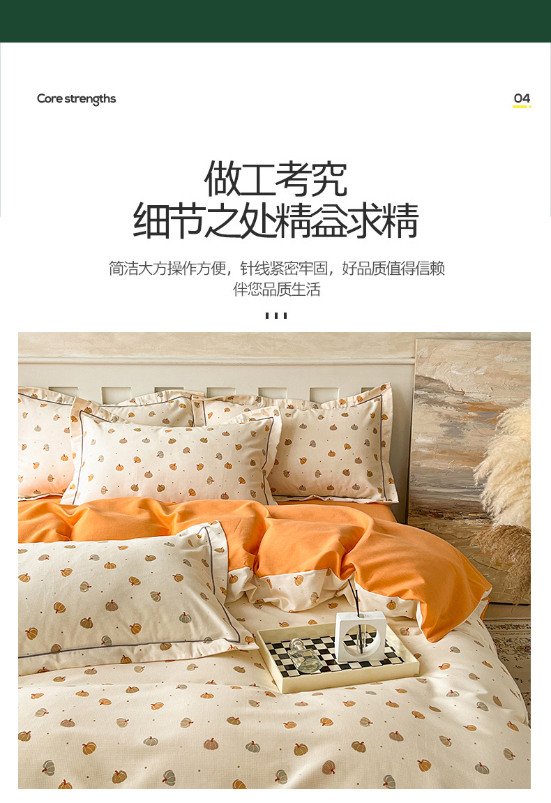 简约 2025新款全棉四件套活性生态磨毛四件套 阿尔法-琥珀橙,阿尔法-琥珀橙