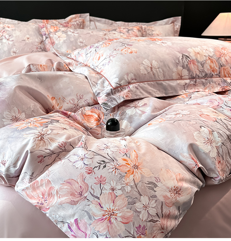 (总)启航家居 2026新款春夏天丝莱赛尔数码印花四件套,花颜外兰,半纸叶灰,池禾韵兰,春溢然兰,春溢然绿,花颜外粉,花园派对沙色,梦境之翼兰,梦境之翼绿,烟花间粉,烟花间绿,樱岛春漫粉,云间素语绿,云间素语紫,早春的树蓝,早春的树紫,栀花语粉,紫陌紫