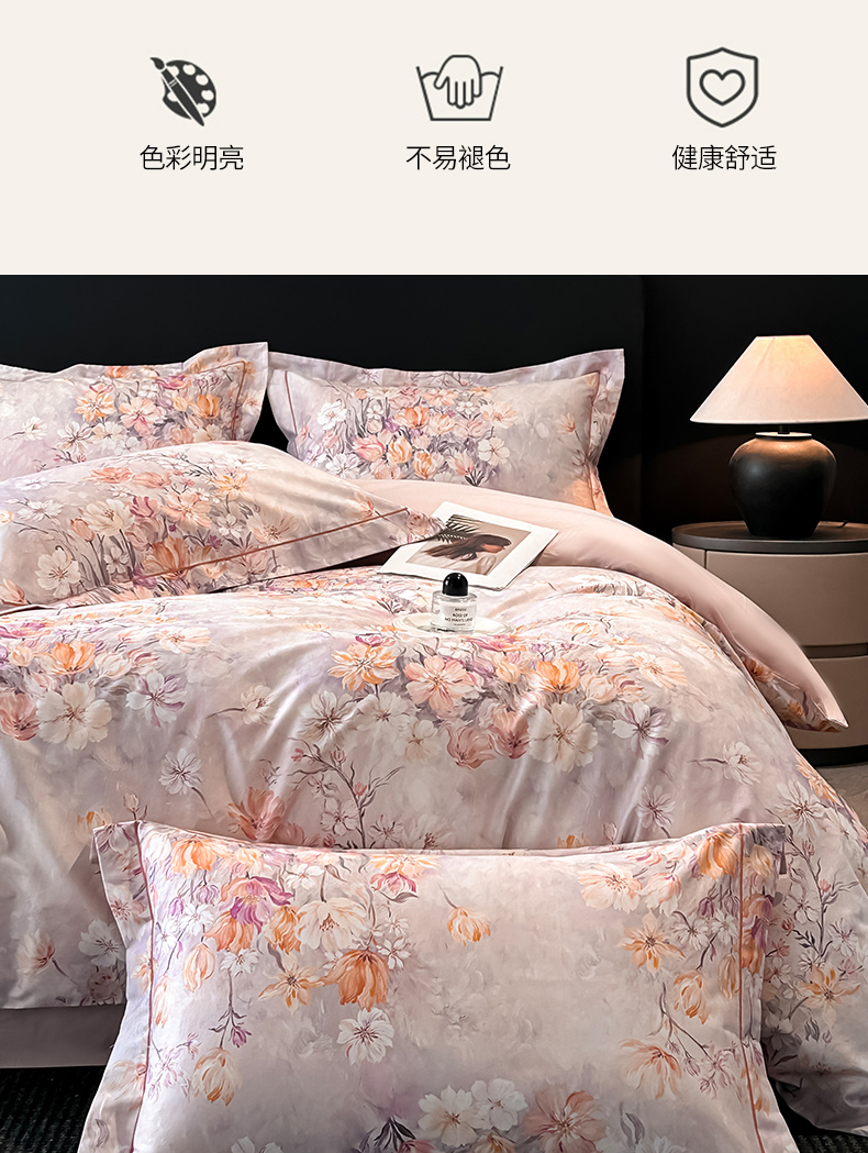 (总)启航家居 2025新款全棉铂金棉数码印花四件套,风香花倦,花的嫁纱,洛香忆梦绿,暮云春树灰,翩若惊鸿粉,普罗旺斯紫,新塞纳舞曲红,新塞纳舞曲紫