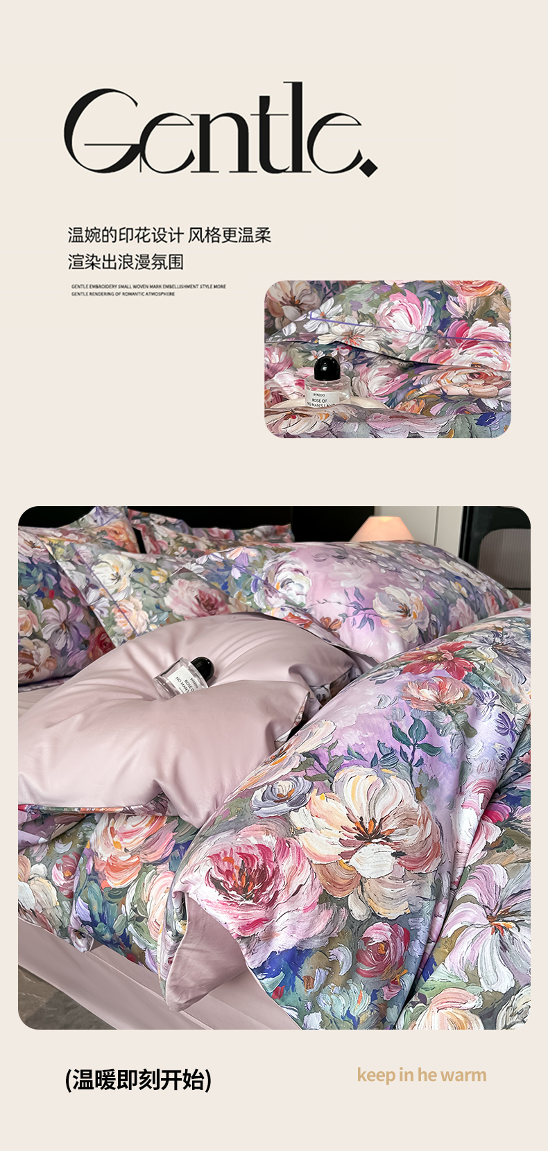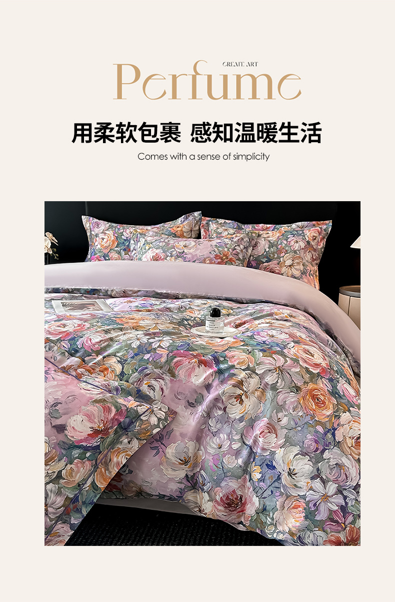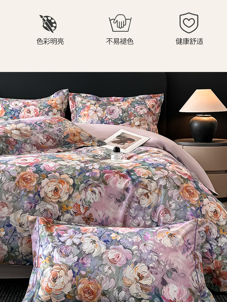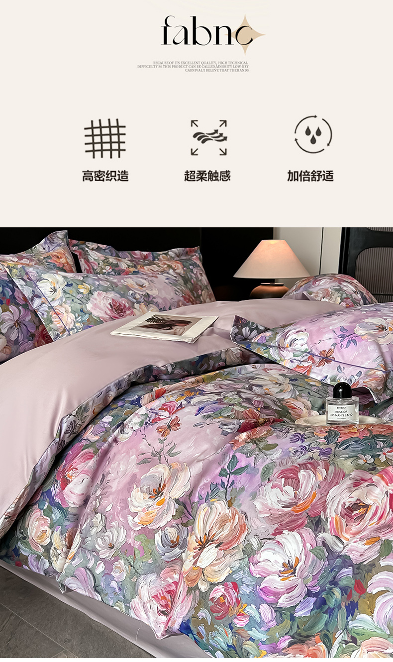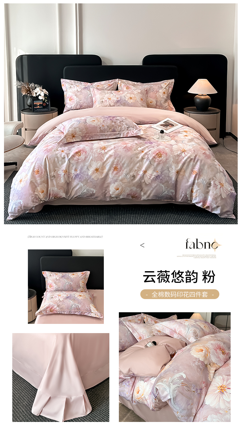 (总)启航家居 2025新款全棉铂金棉数码印花四件套,风香花倦,花的嫁纱,洛香忆梦绿,暮云春树灰,翩若惊鸿粉,普罗旺斯紫,新塞纳舞曲红,新塞纳舞曲紫