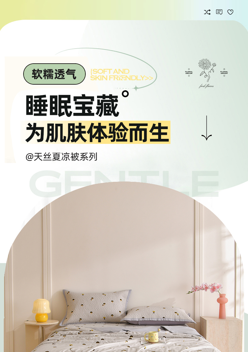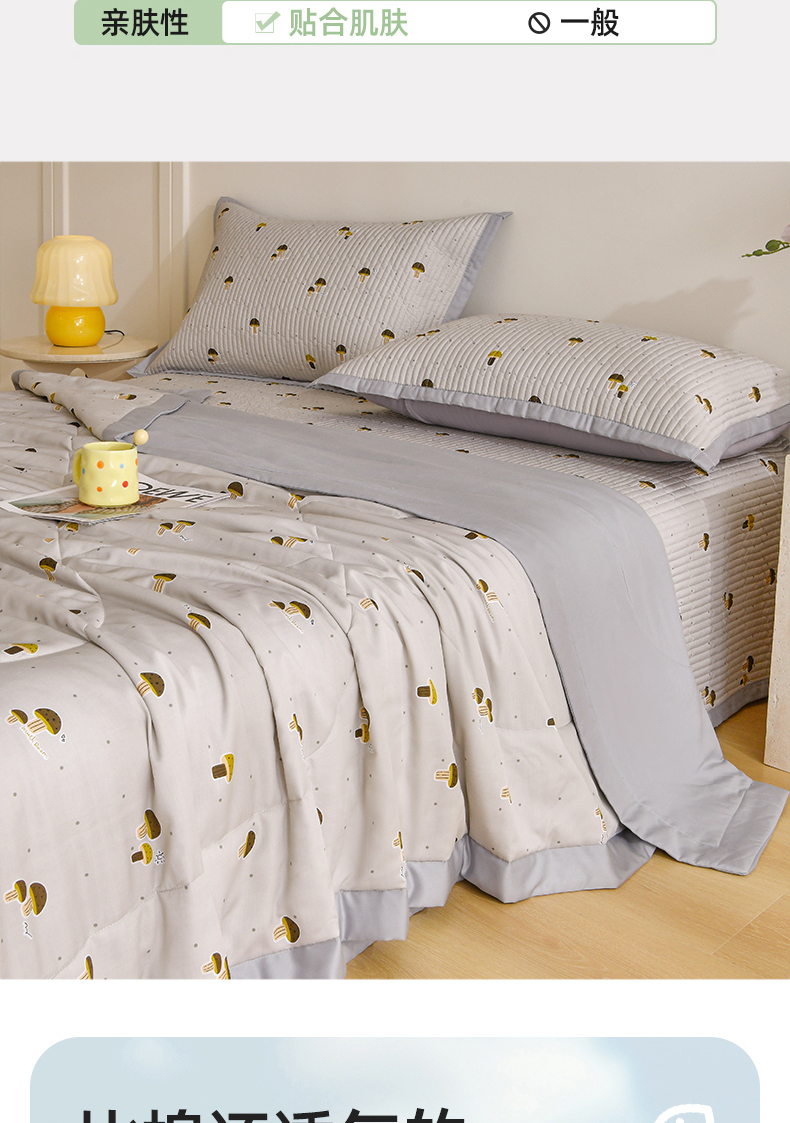 • 91家纺网 家纺一手货源 找家纺 金艾草 2026新款莫代尔天丝印花夏被床盖四件套三件套 蘑菇派