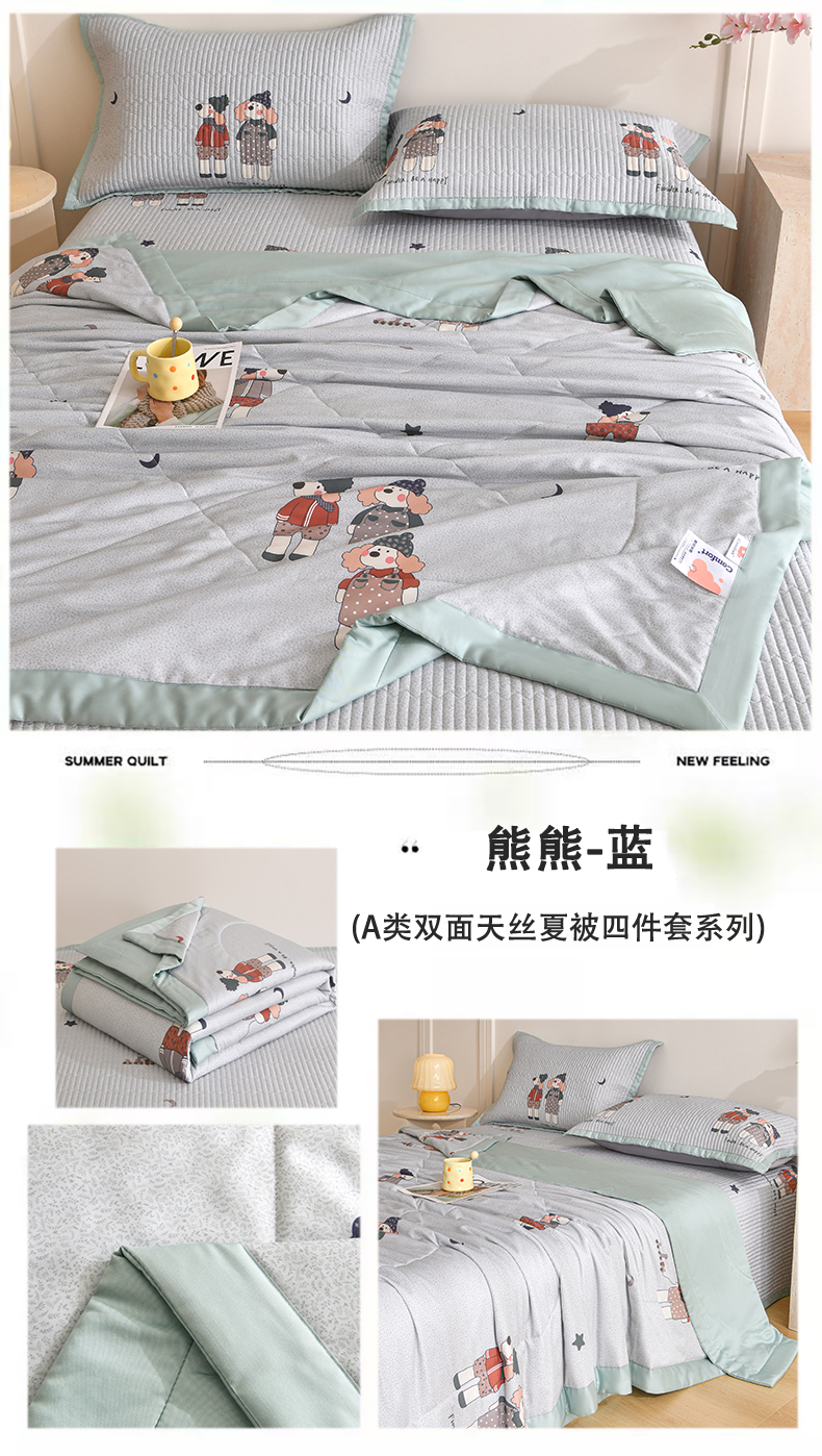 (总)金艾草 2026新款莫代尔天丝印花夏被床盖四件套三件套,蘑菇派,粉色-小象,拉布布-蓝,森林奇遇,山茶花-灰色,山茶花-紫,山菊-灰,桃粉,甜果-绿,香肠狗-绿色,熊熊-蓝,伊特花园
