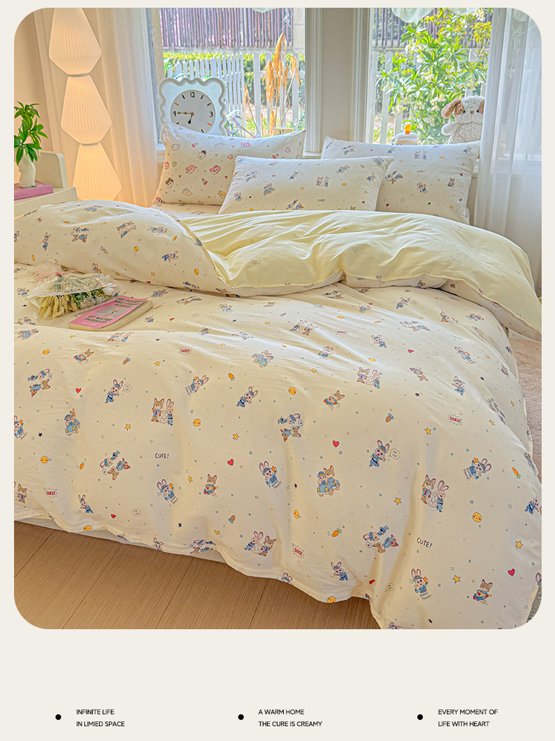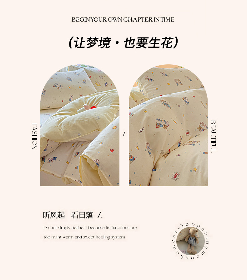 (总)优眠坊 2026新款全棉双层纱四件套,彼得兔,波点小熊,黄色郁金香,花环小兔,花季,恐龙乐园,蘑菇小兔,兔小姐的花园,兔子森林,小象北北,烟紫罗蔓,珍妮兔兔花,小羊苏西,早安小熊