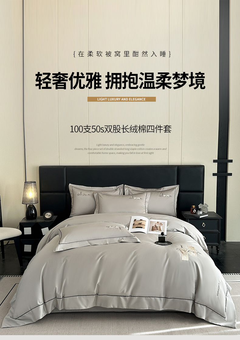当前位置: 91家纺网 > 商品网购 > 床品套件 > 四件套 > 长绒棉四件套 > (总)新方向 【控价 提供买家秀】2026新款 刺绣50s双股全棉贡缎长绒棉四件套-哈德森(控价 标准328元 加大348元)