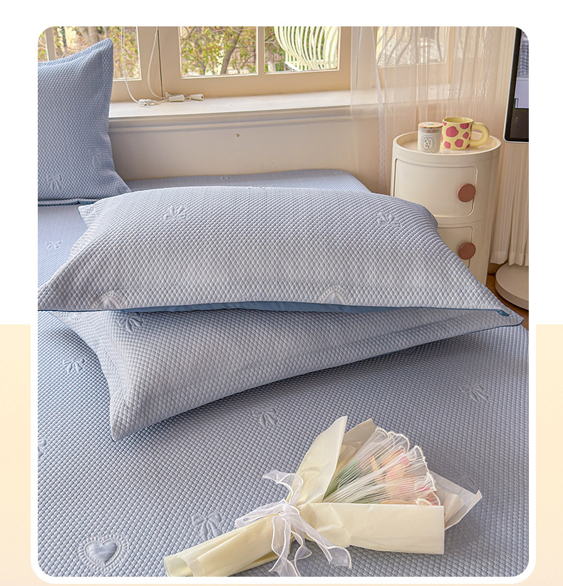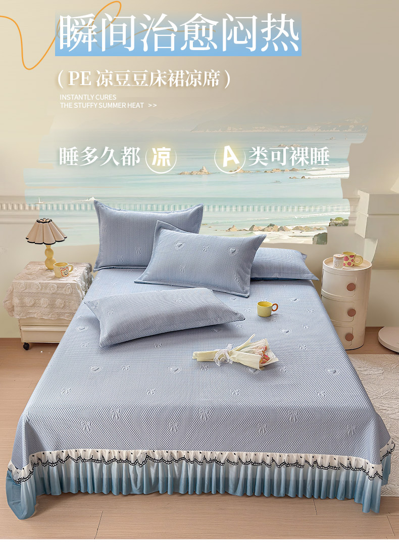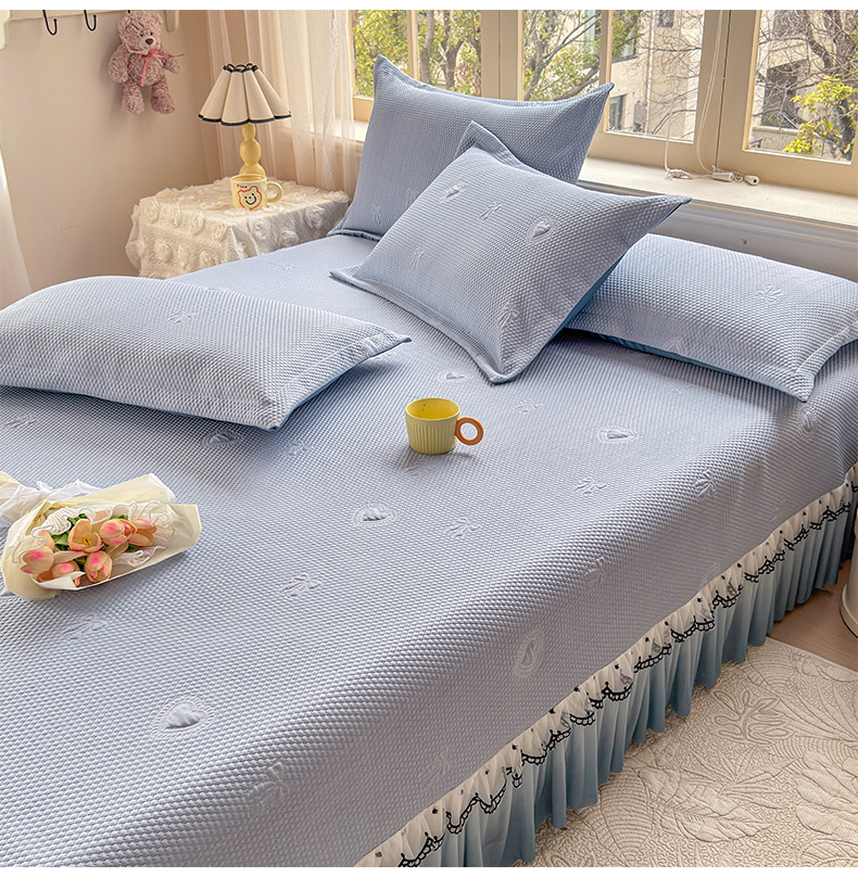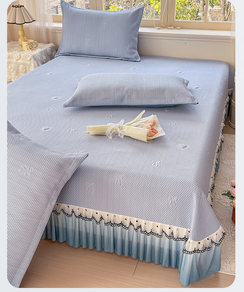当前位置: 91家纺网 > 商品网购 > 床上用品 > 凉席 > 其他凉席 > 鑫利来家纺 2026新款A类PE乙纶凉豆豆凉席高分子提花凉感冰豆豆床裙款凉席三件套 爱心蝴蝶结-冰蓝