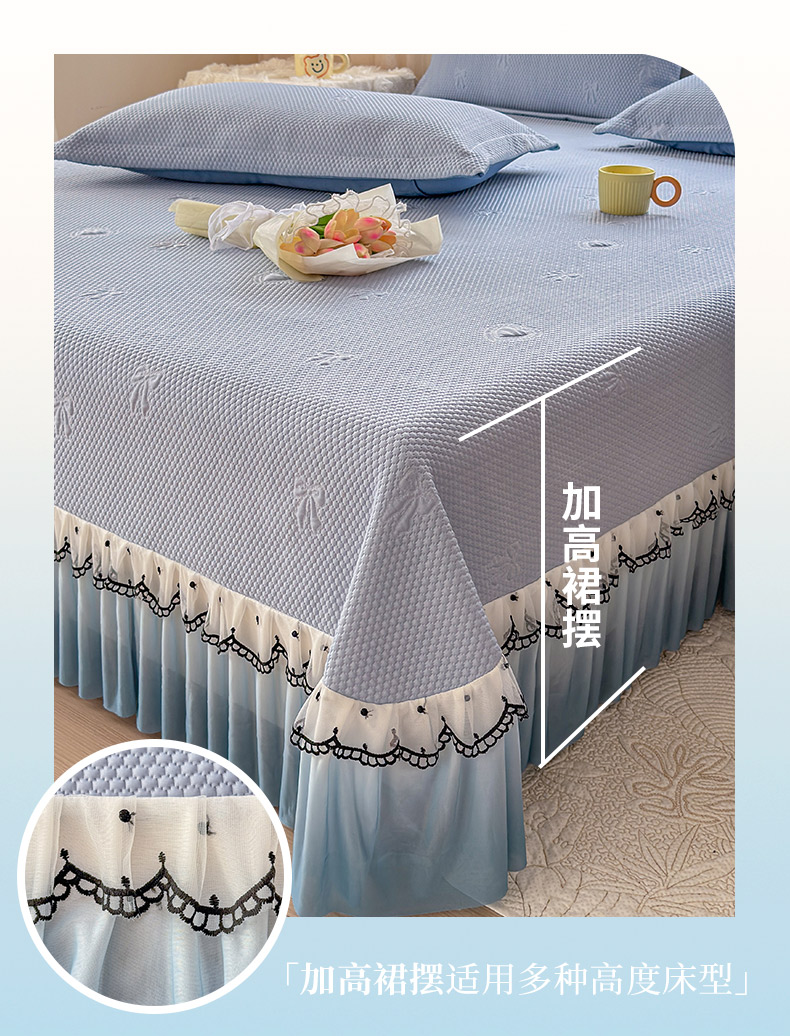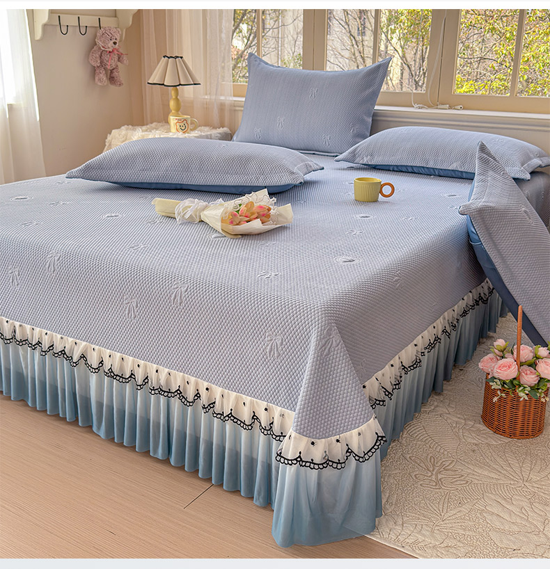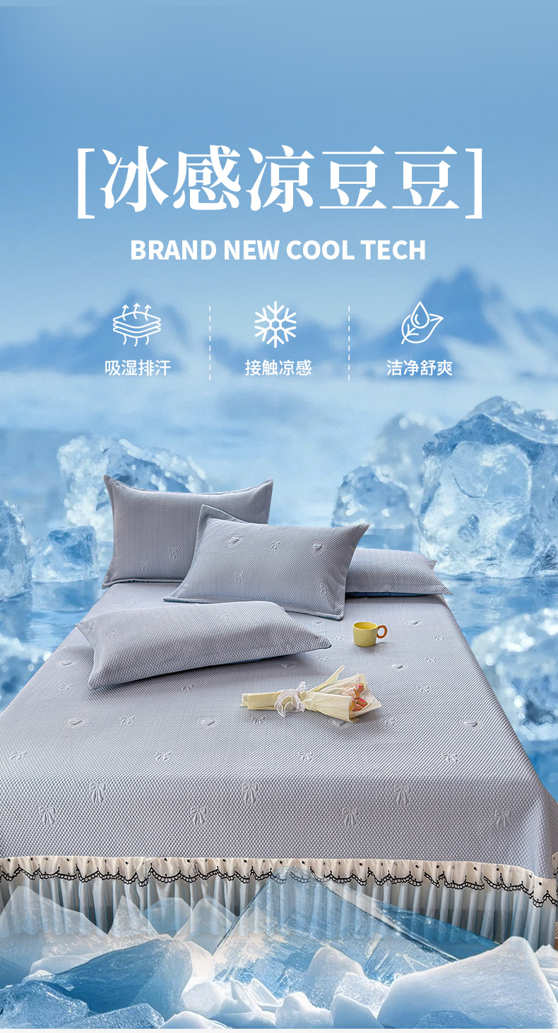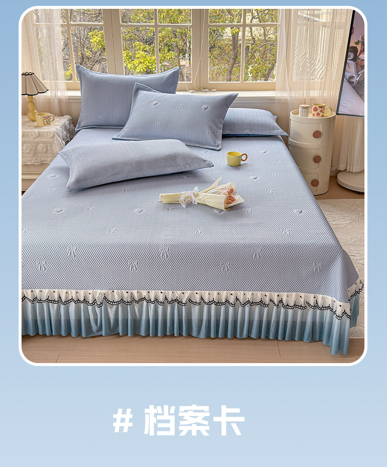 当前位置: 91家纺网 > 商品网购 > 床上用品 > 凉席 > 其他凉席 > 鑫利来家纺 2026新款A类PE乙纶凉豆豆凉席高分子提花凉感冰豆豆床裙款凉席三件套 爱心蝴蝶结-冰蓝