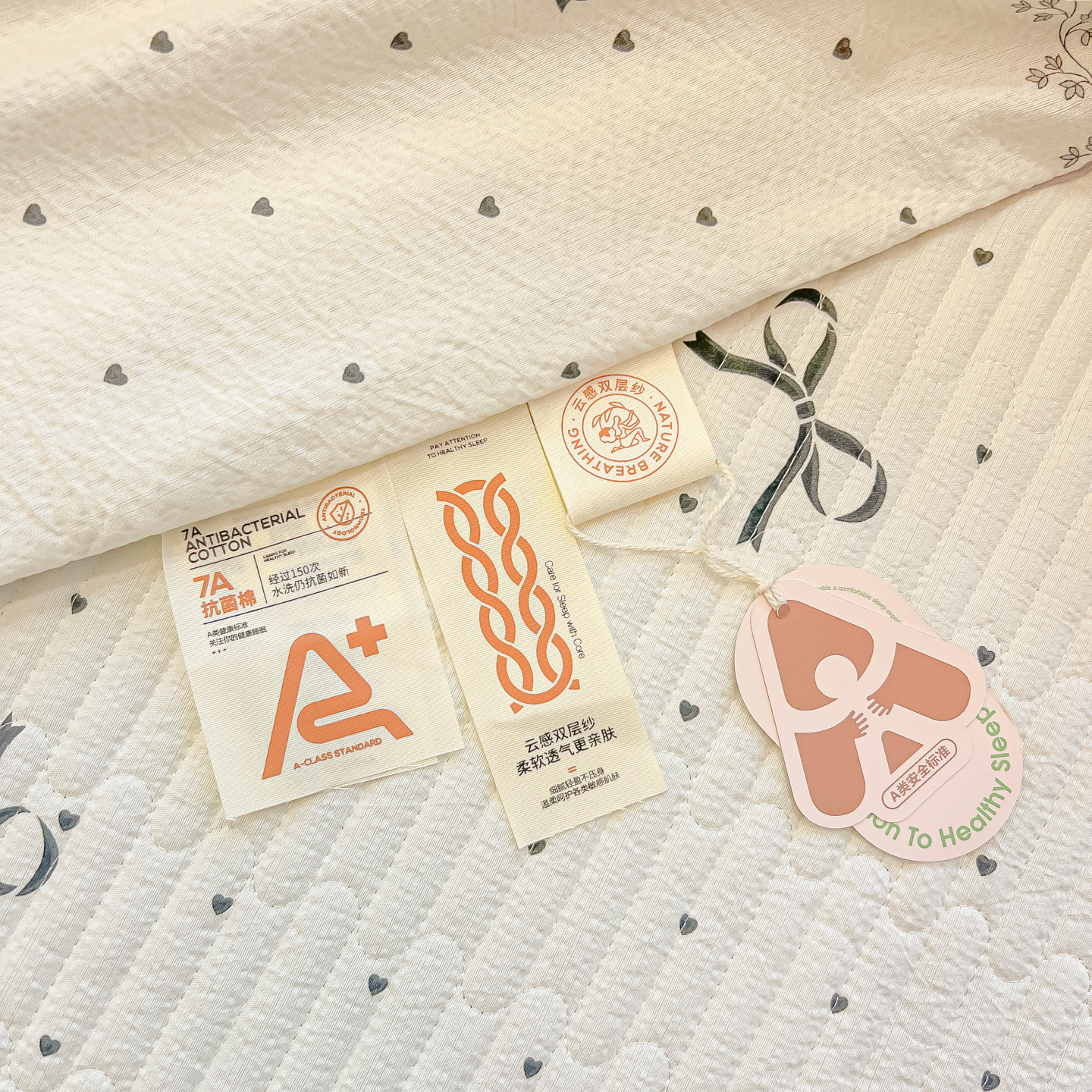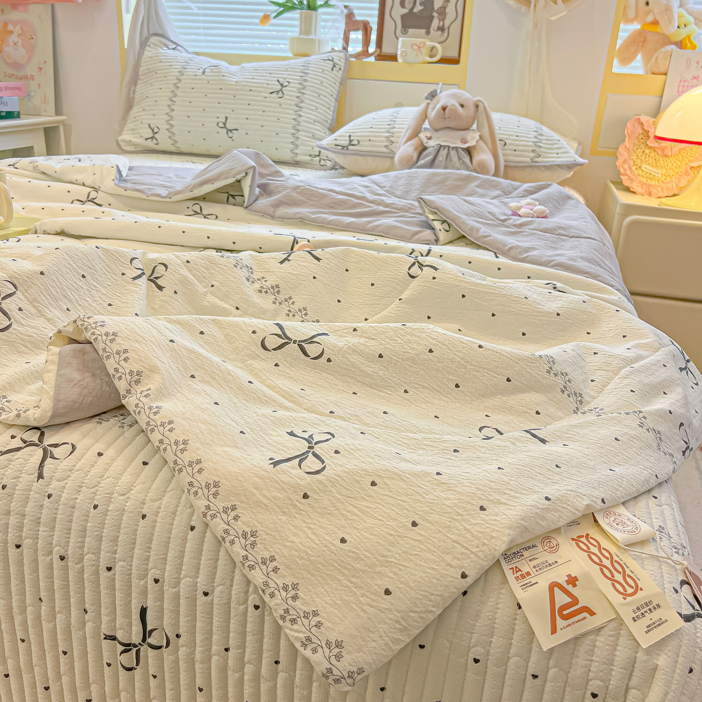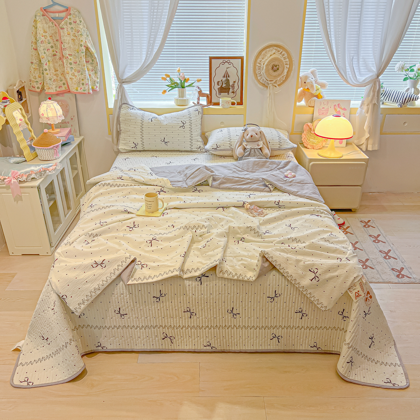 • 91家纺网 家纺一手货源 找家纺 乐逸家纺  2026新款A类云感双层纱夏被床盖四件套 点点结