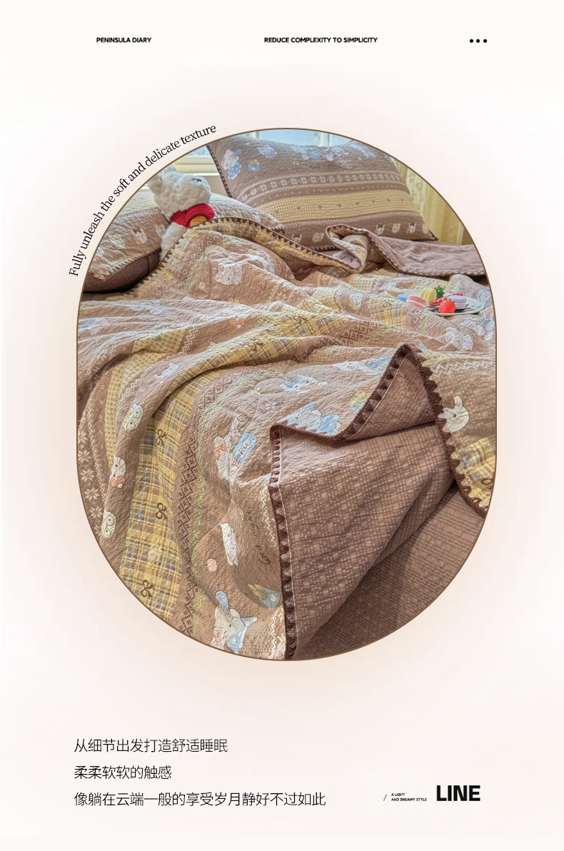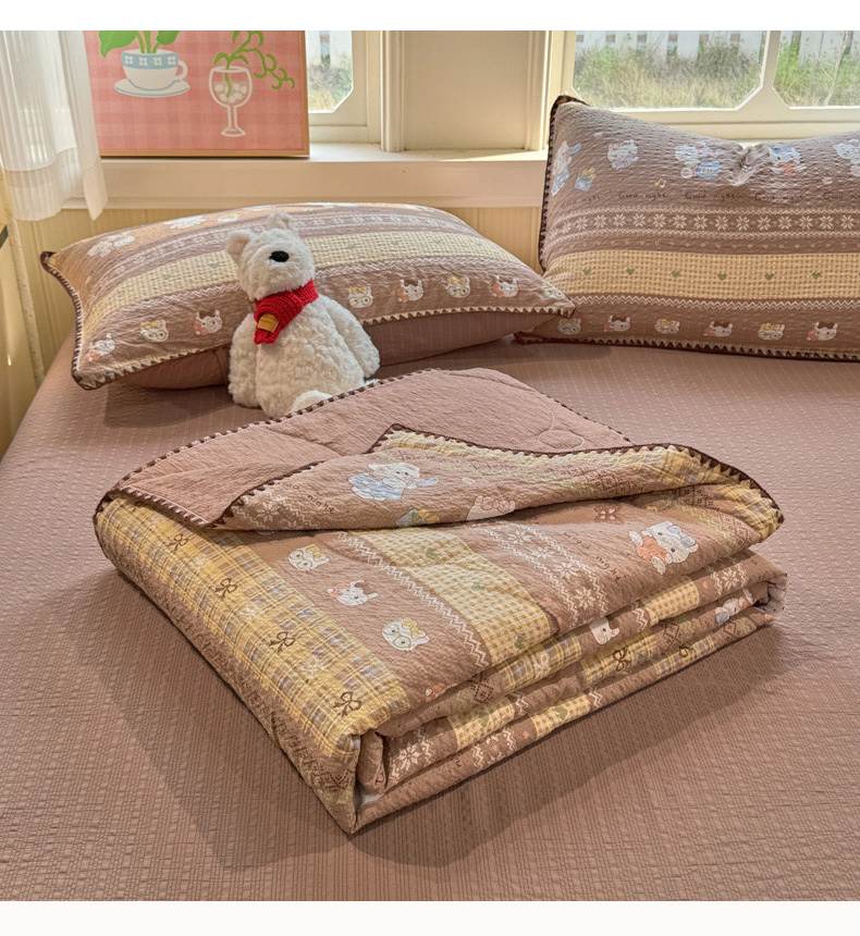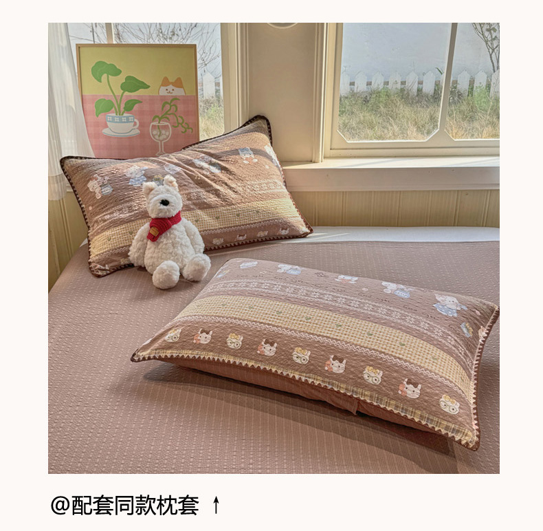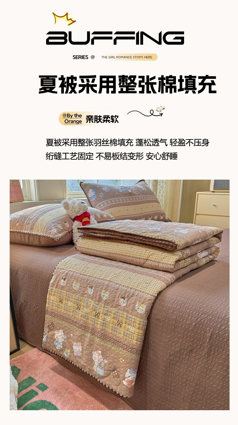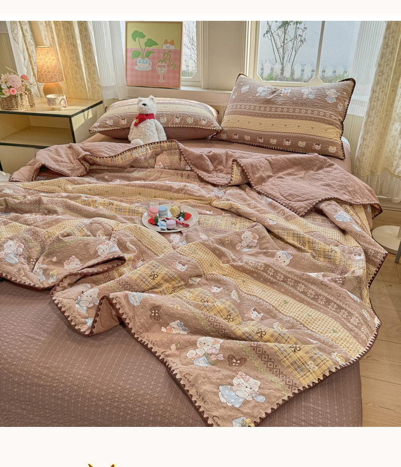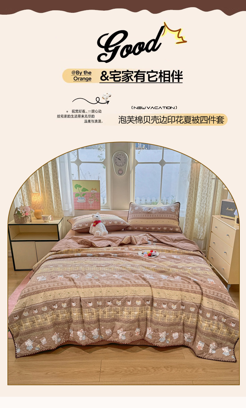 商品名称:慕澄家纺 2026新款泡芙棉贝壳边印花夏被四件套 夏被-椰棕猫软糖