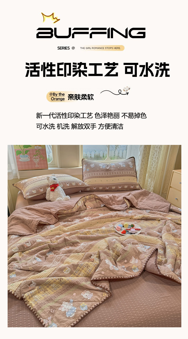 (总)慕澄家纺 2026新款小清新印花水洗棉床盖单品床盖床盖单件,组合图仅做展示不可下单,彩色南瓜,敦煌,灰叶,可爱小熊,蓝花樱桃,绿尧,汀兰,小玫瑰