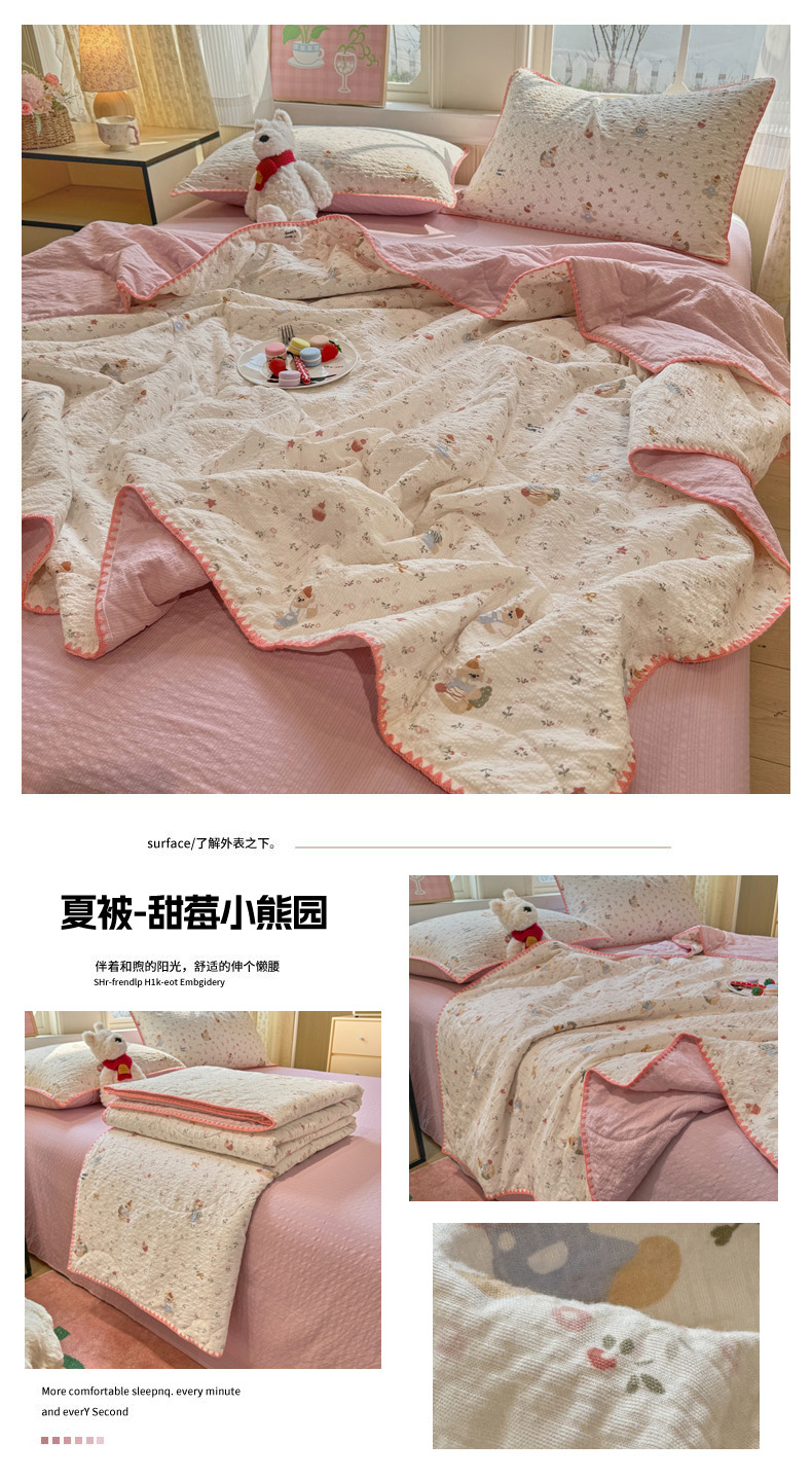 (总)慕澄家纺 2026新款泡芙棉贝壳边印花夏被四件套,夏被-粉边兔小乖,夏被-红马星野,夏被-焦糖海盐,夏被-栗栗南瓜派,夏被-奶橘小甜梦,夏被-奶蓝部落,夏被-奶雾玫瑰,夏被-青条熊猫梦,夏被-少女花田,夏被-甜莓小熊园,夏被-童话镇,夏被-午夜花园,夏被-星落小红帽,夏被-椰棕猫软糖