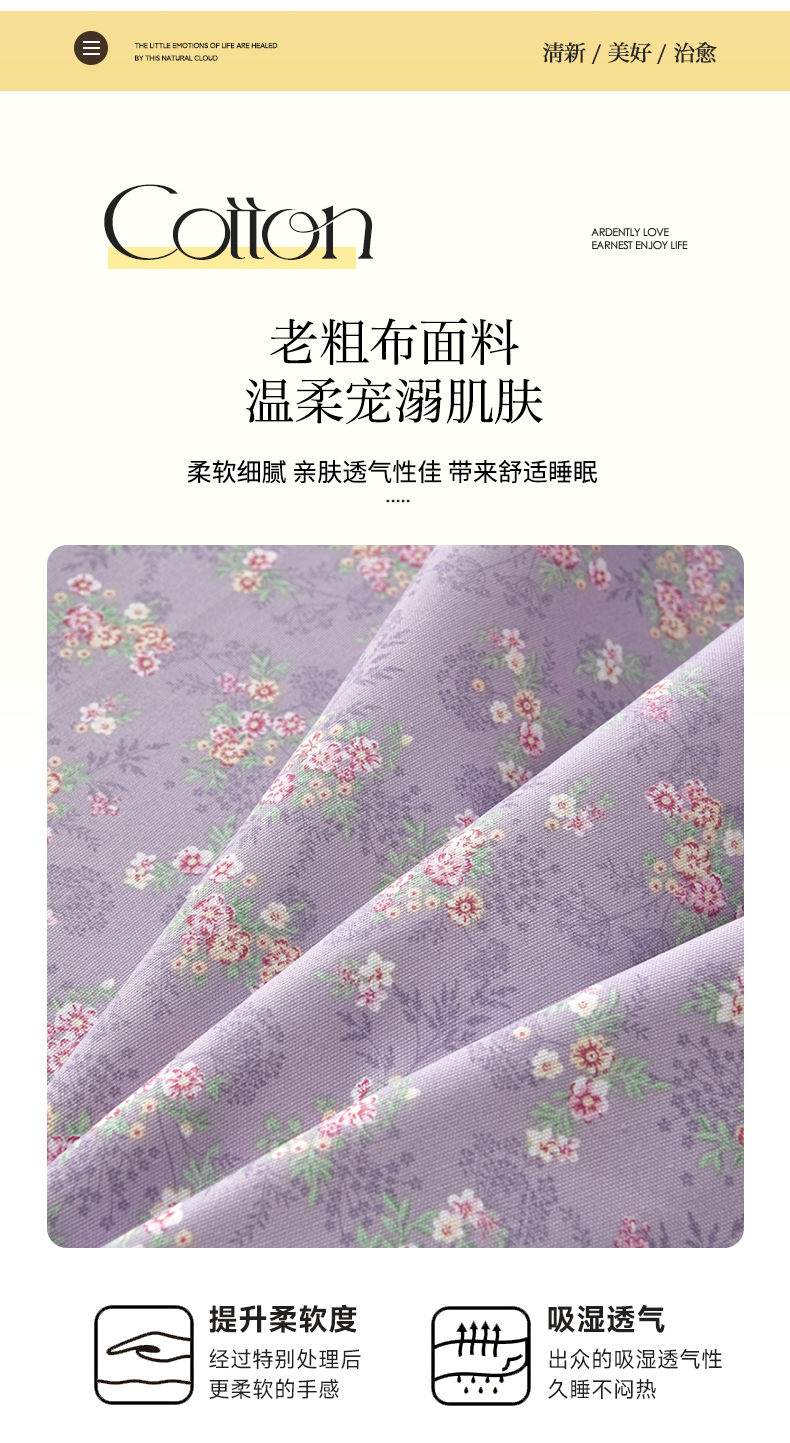 (总)星窝 2026新款复古风仿麻床盖款四件套,繁花,花蔓,金叶漫舞,抹茶格语,奶杏花蔓,青花瓷,雾蓝花簇,雾蓝小格,雾里繁花,烟紫花影