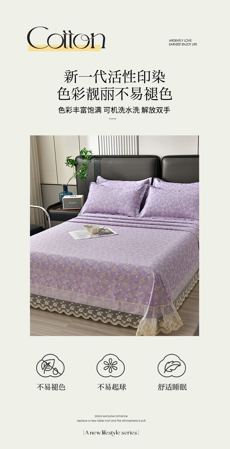 (总)星窝家纺 2025新款水洗棉花边床裙式多功能床盖三件套,经典豆绿,经典粉色,经典灰色,经典橘色,经典蓝色,经典奶白,经典紫色