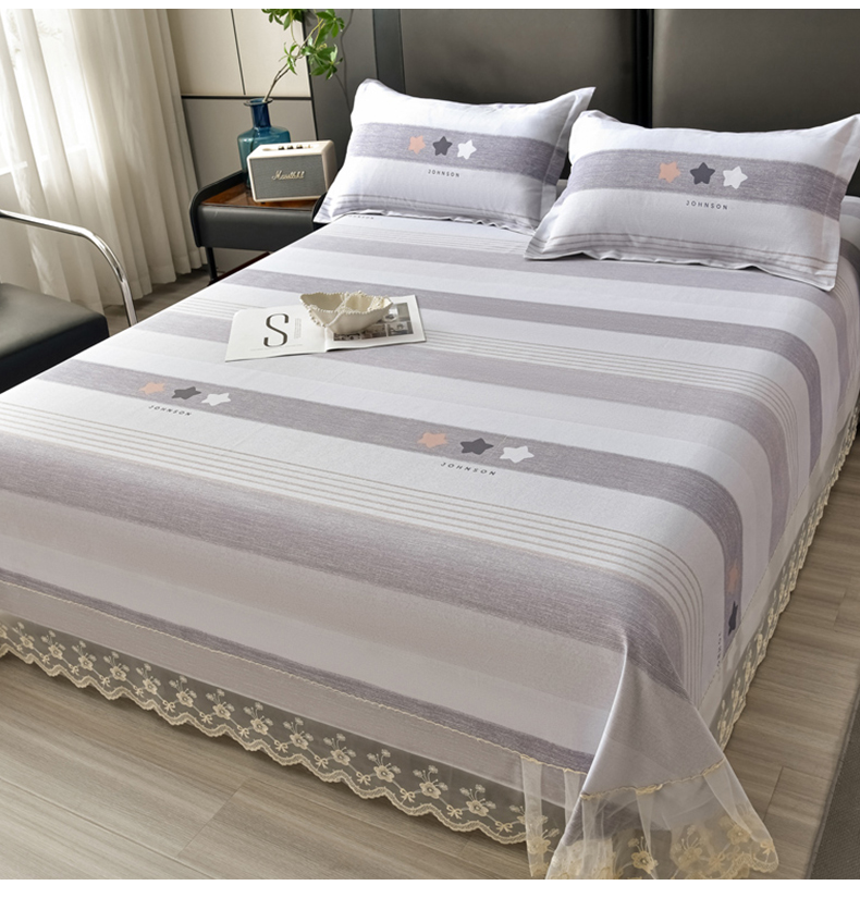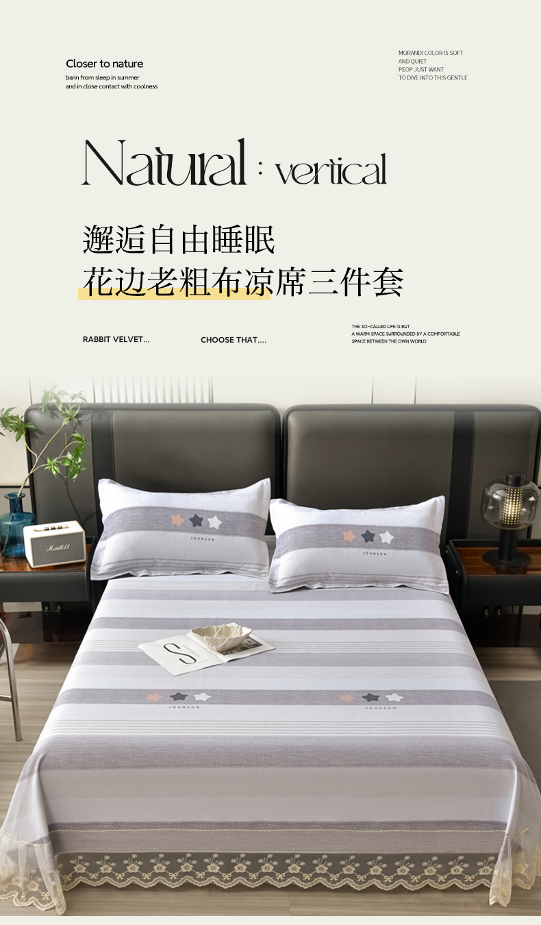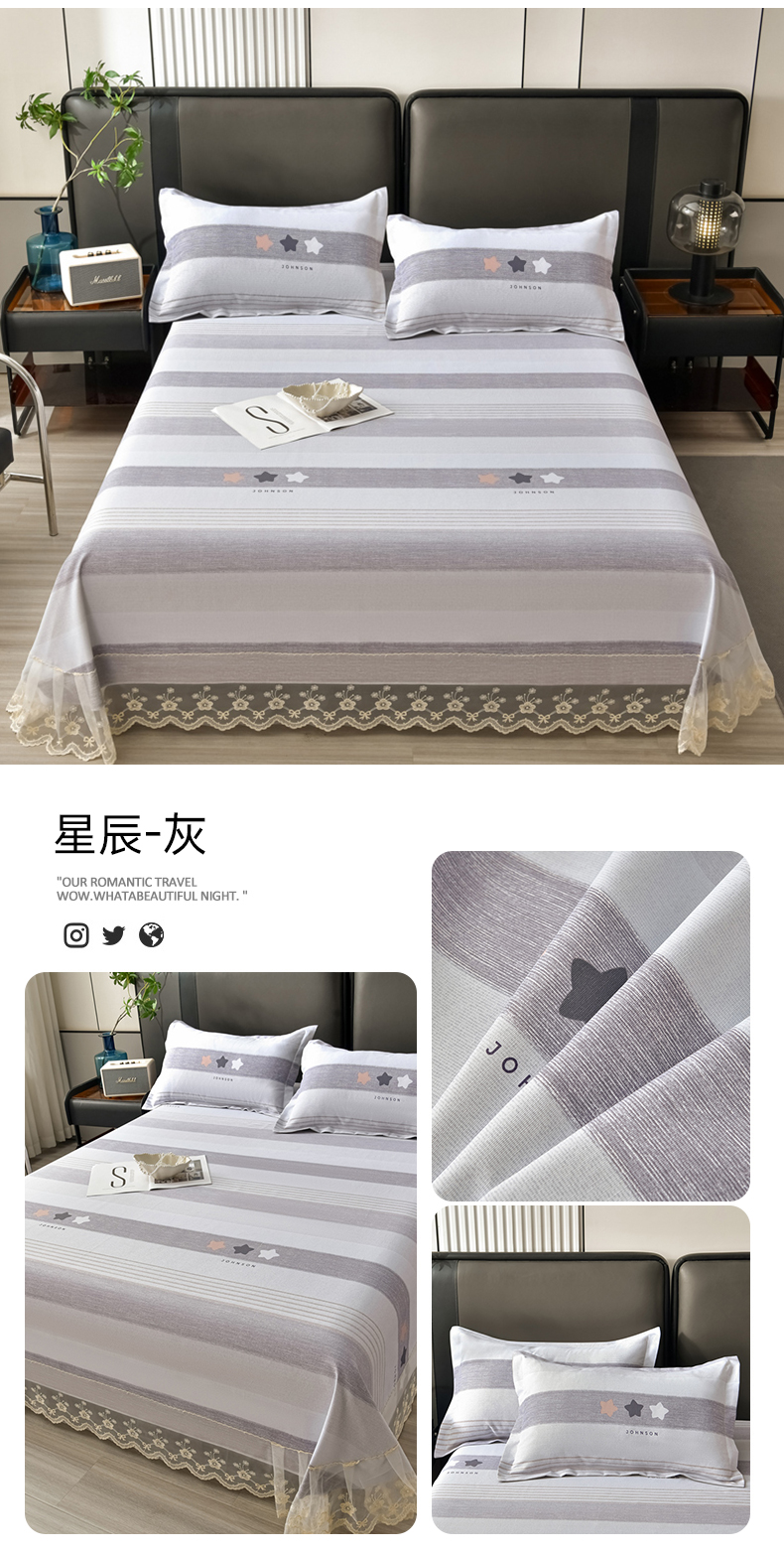 商品名称:星窝家纺 2026新款花边老粗布凉席三件套 星辰-灰