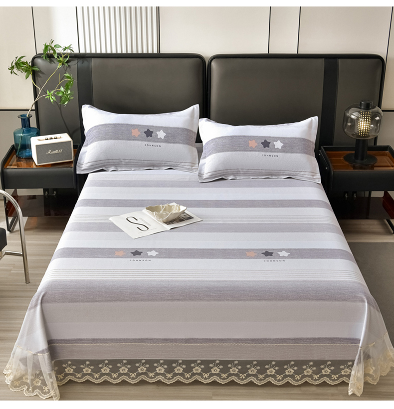 星窝家纺 2026新款花边老粗布凉席三件套 星辰-灰