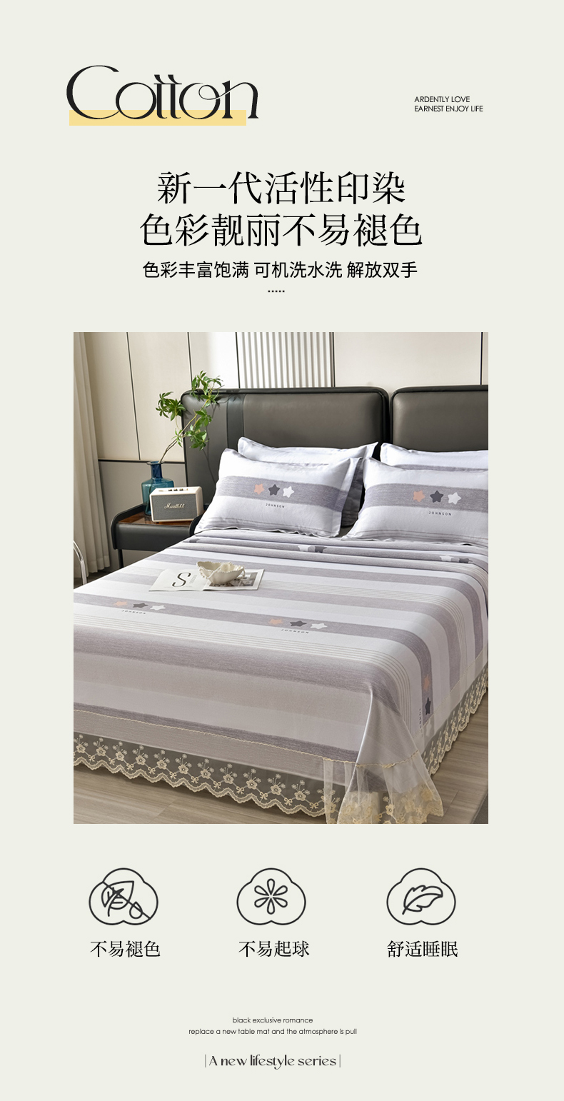 (总)星窝家纺 2025新款水洗棉花边床裙式多功能床盖三件套,经典豆绿,经典粉色,经典灰色,经典橘色,经典蓝色,经典奶白,经典紫色