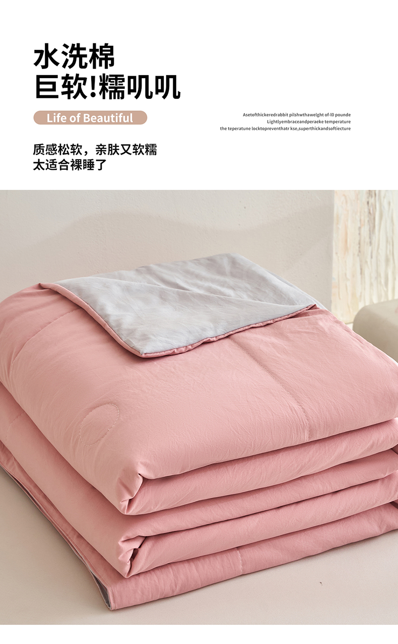 (总)2026春秋四季空调夏凉被亲肤水洗棉羽丝绒太空被单双人宿舍学生被芯直播跨境批发优惠,云灰色,糯粉色,暖白色