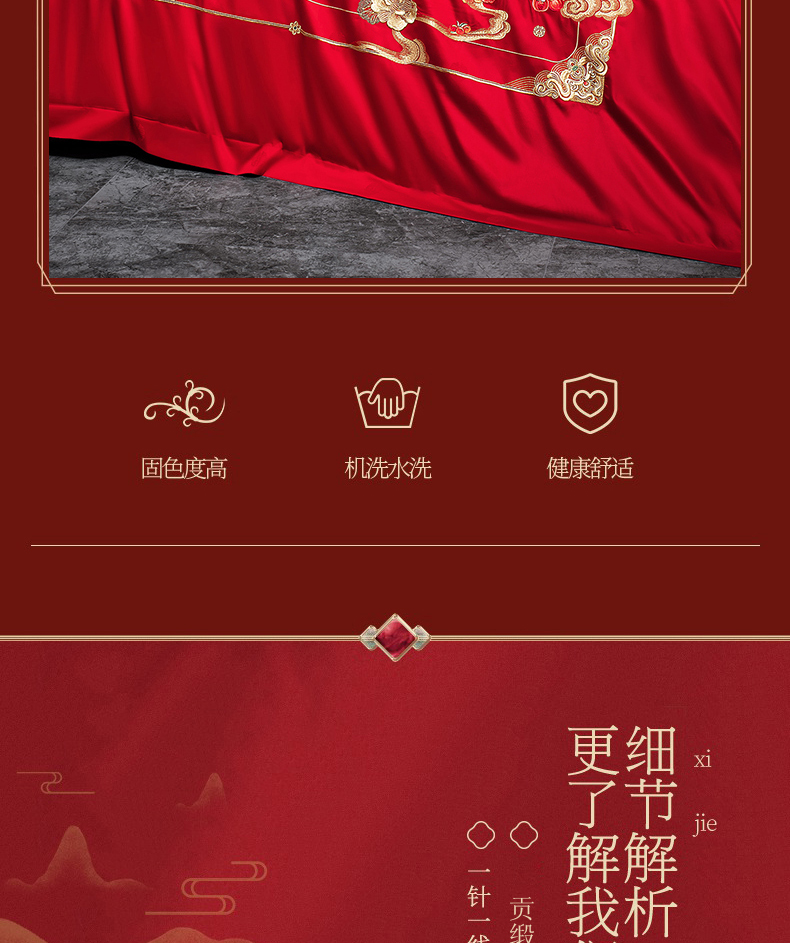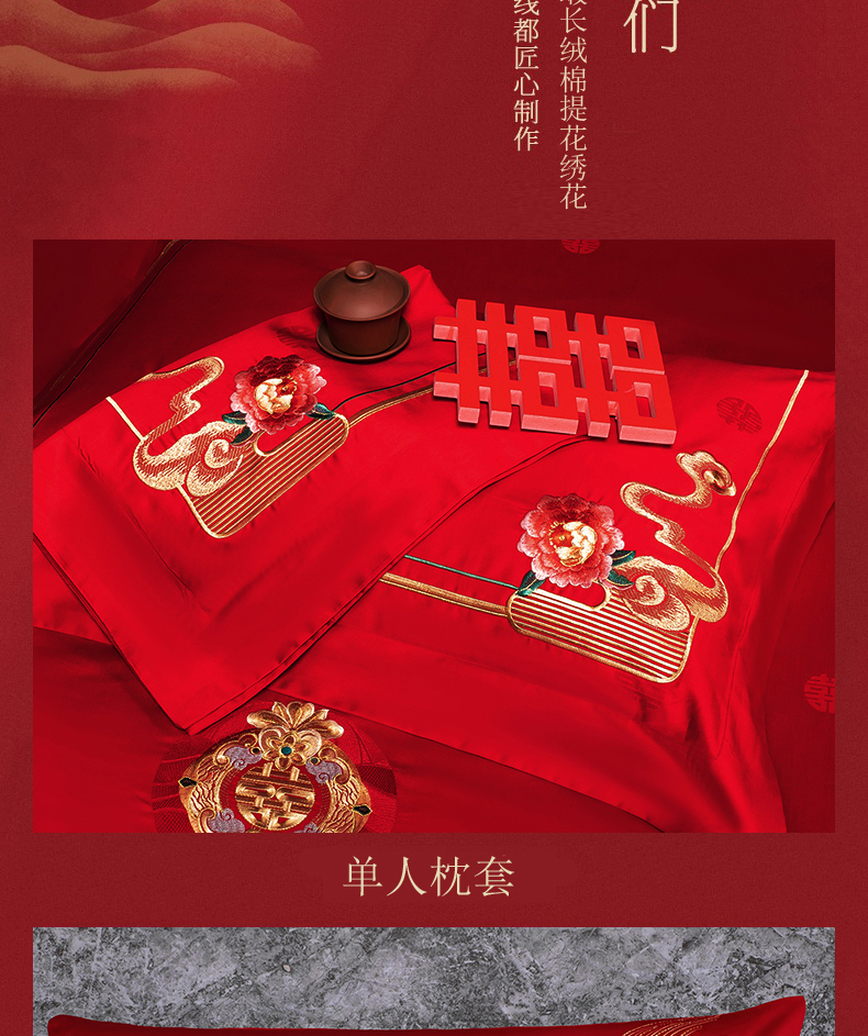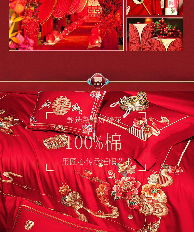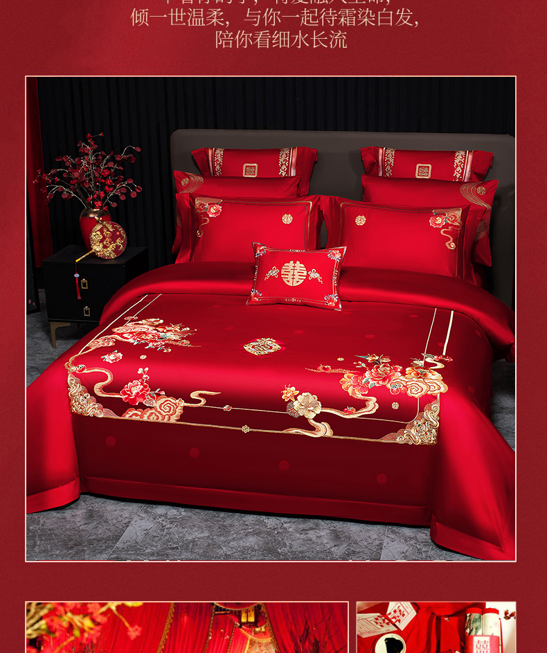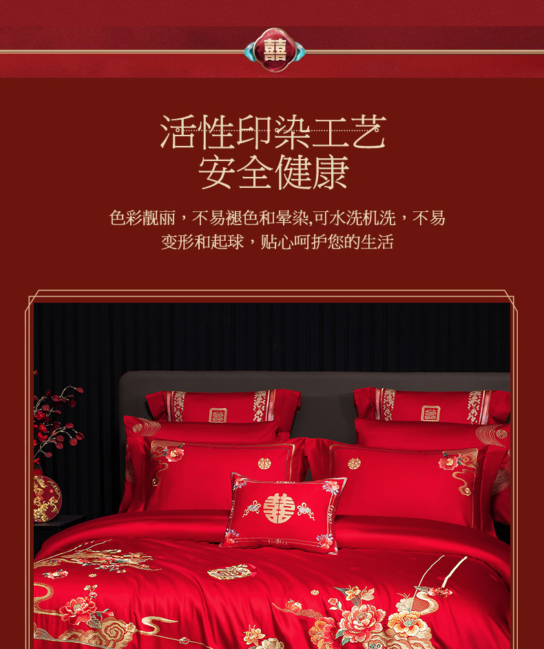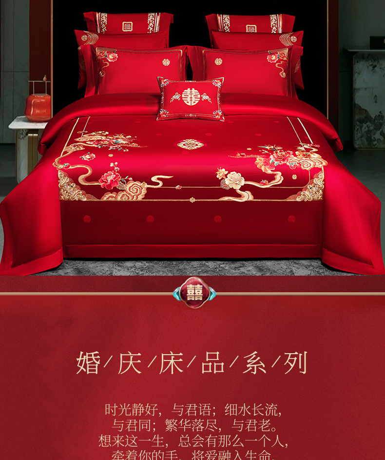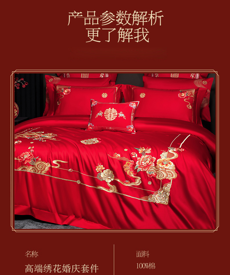 当前位置: 91家纺网 > 商品网购 > 床品套件 > 四件套 > 婚庆四件套 > 蒂爵 2026年重绣性价比款长绒棉提花全棉纯棉绣花婚庆四件套多件套大红色刺绣结床上用品 国色天香