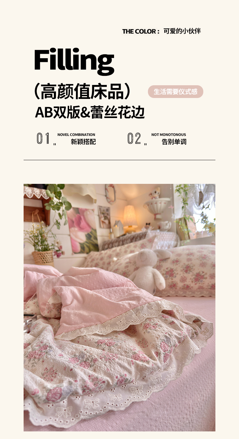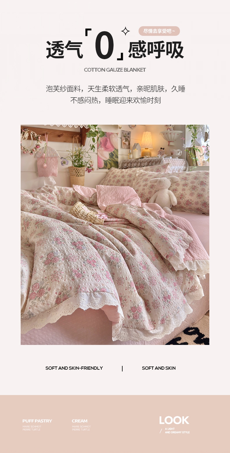 (总)初念 2025新款亲肤舒适双层纱云感纱小花边四件套-拾光,拾光-芭比兔,拾光-复古浪漫,拾光-花丛萌兔,拾光-花丛女孩,拾光-少女象,拾光-狮子唱片,拾光-思念女孩,拾光-星眠云野