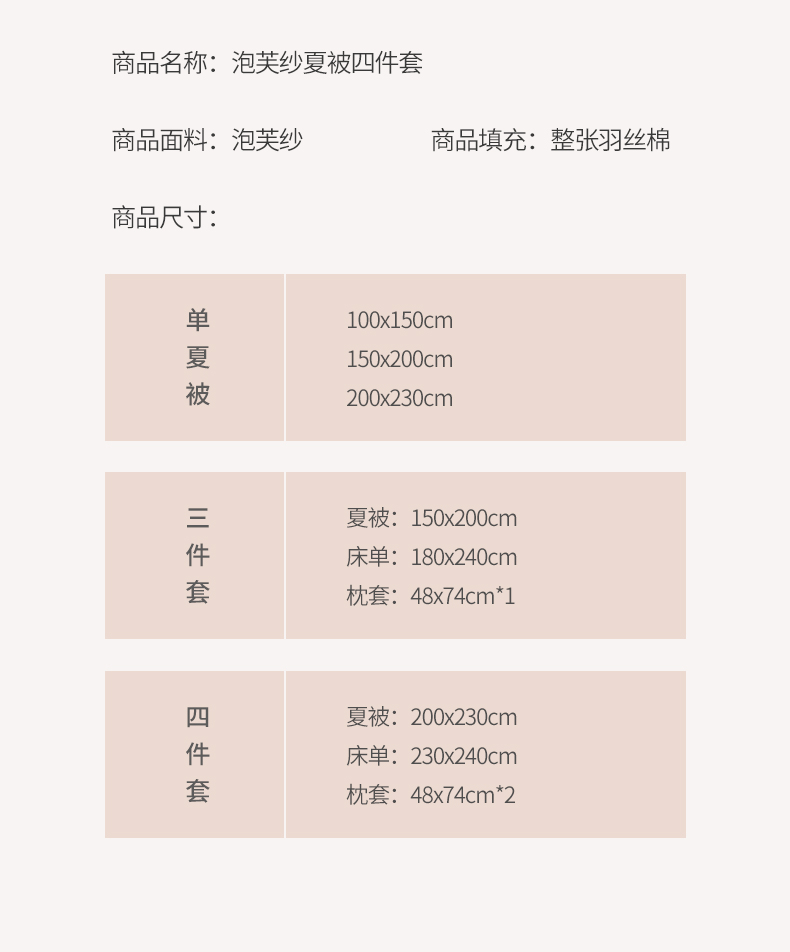 200*230cm夏被床单四件套