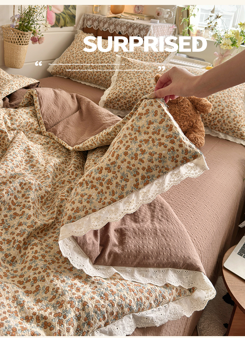 初念 2026新款泡芙纱全花边夏被四件套 花笺-庄园小兔