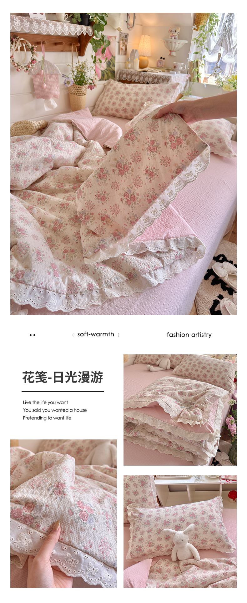 (总)初念 2025新款亲肤舒适双层纱云感纱小花边四件套-拾光,拾光-芭比兔,拾光-复古浪漫,拾光-花丛萌兔,拾光-花丛女孩,拾光-少女象,拾光-狮子唱片,拾光-思念女孩,拾光-星眠云野