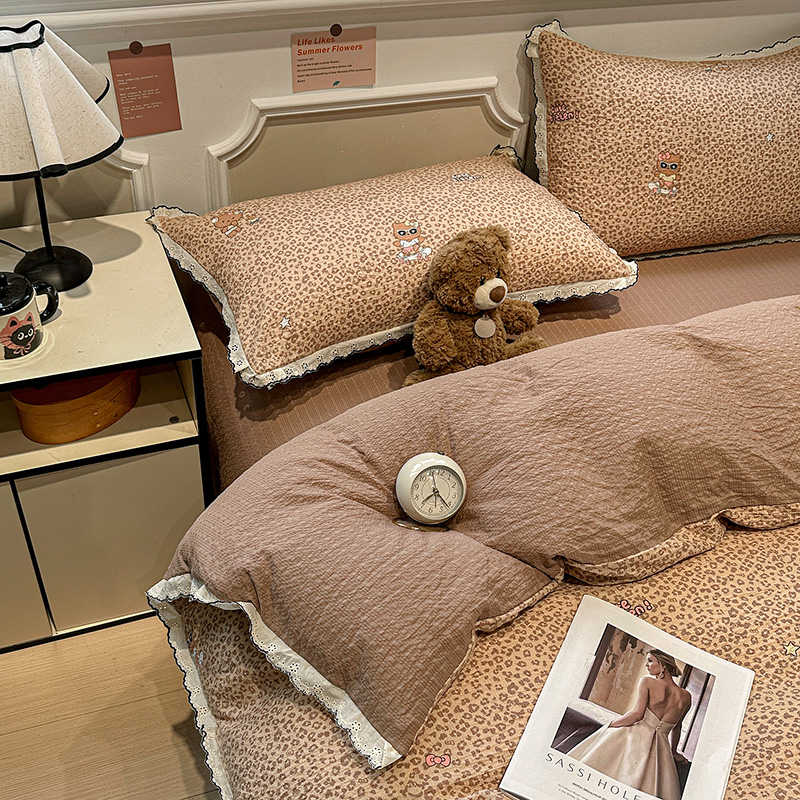 (总)一比一家纺 2026新款云感泡芙棉小清新印花贝壳边四件套,豹纹凯蒂,蛋糕星人,费尔岛小狗,哈喽星人,黑白蝴蝶,萌趣小马,萌趣小熊,青涩樱桃,诗意柔,小汽车,摇摇星人,樱桃波点