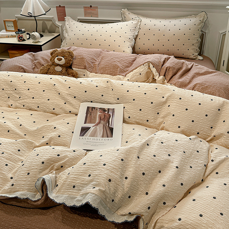 (总)一比一家纺 2026春季新款高克重加厚色织提花系列四件套,北欧童话,波点,复古小花,花清梦,岚影,铃兰,玛奇朵,漫秋,萌萌狗,萌萌兔,摩洛哥,蘑菇兔-粉,蘑菇兔-咖,暖栗南瓜,少女心,甜心咖,童梦园,汪星人,小樱桃,摇摇马,野蔷薇,樱桃狗,紫薇,组合图仅供展示不可下单