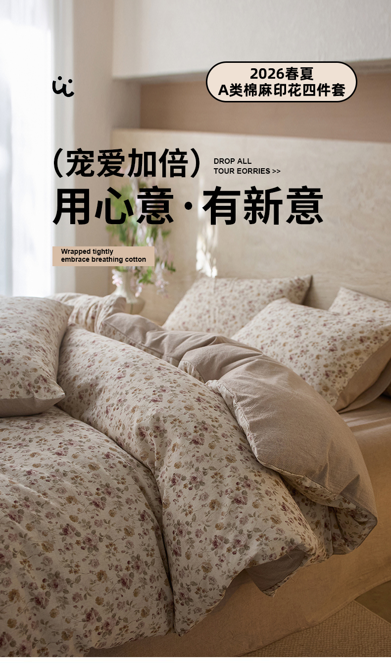 当前位置: 91家纺网 > 商品网购 > 床品套件 > 四件套 > 棉麻四件套 > 亿梵家居 2026春夏新款A类棉麻印花四件套 红唇之吻